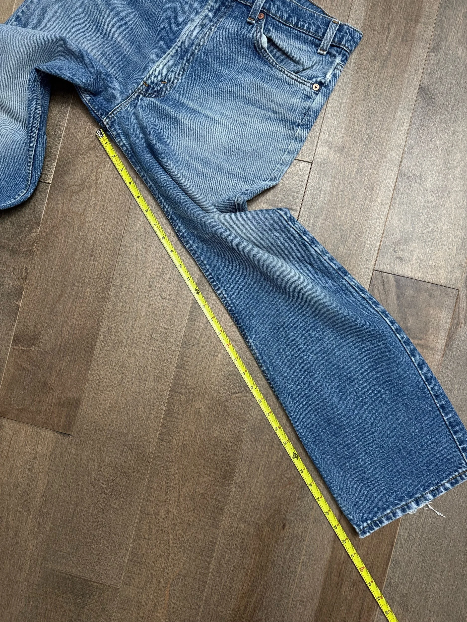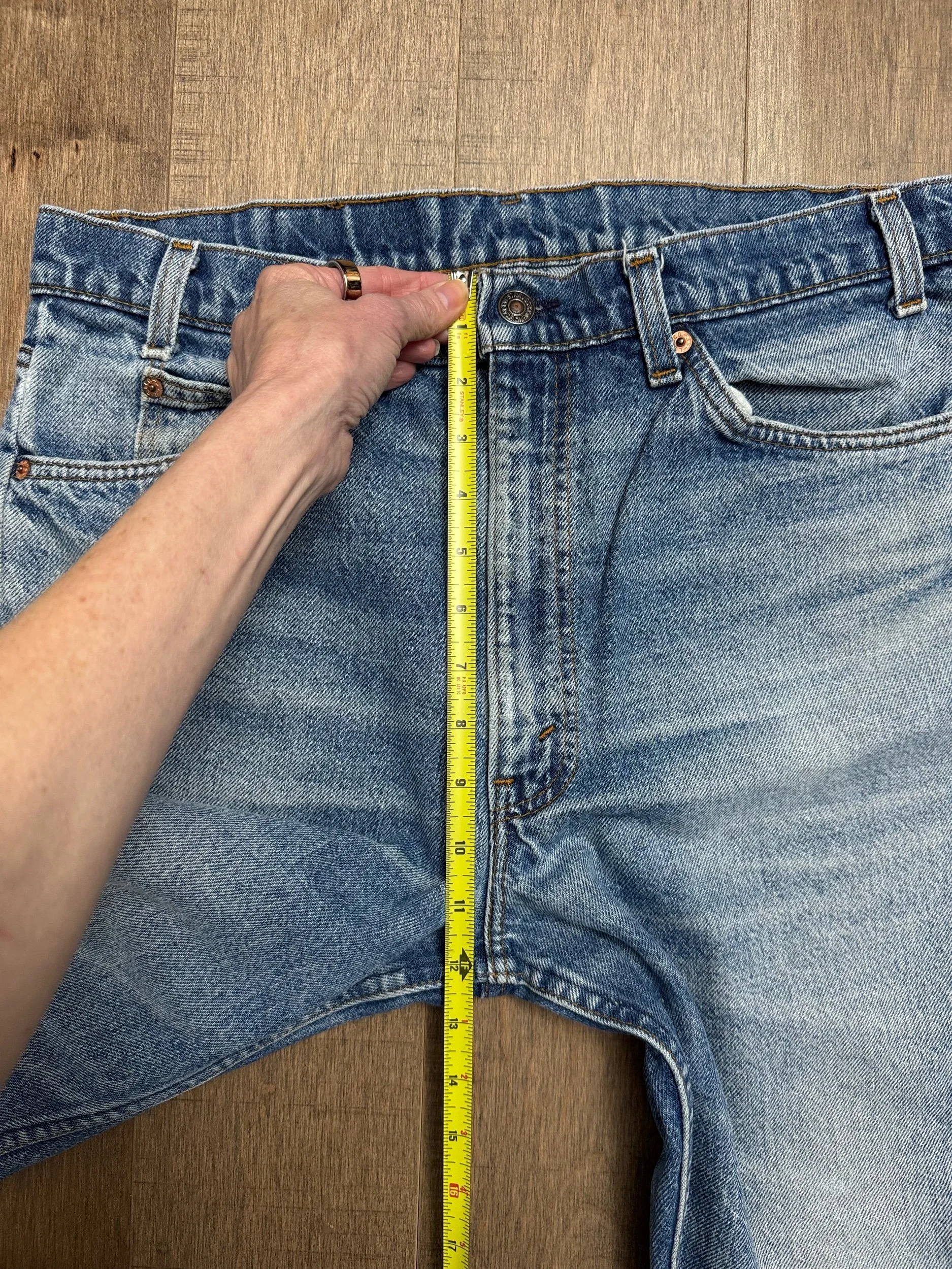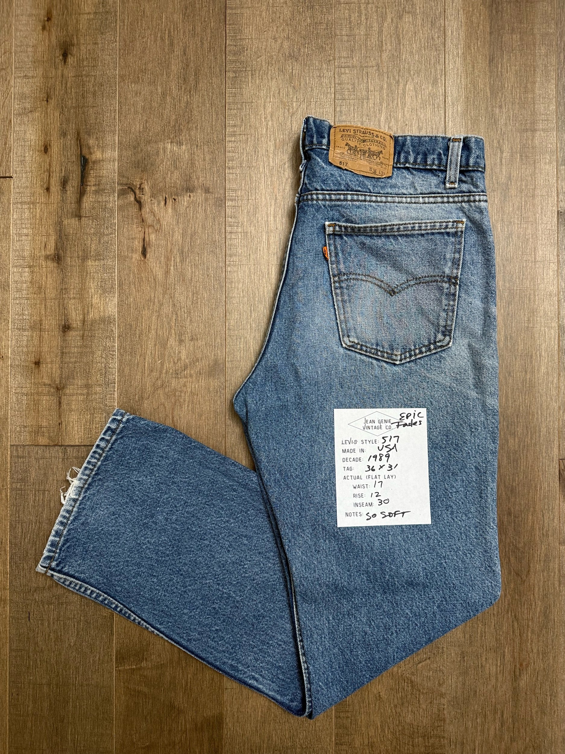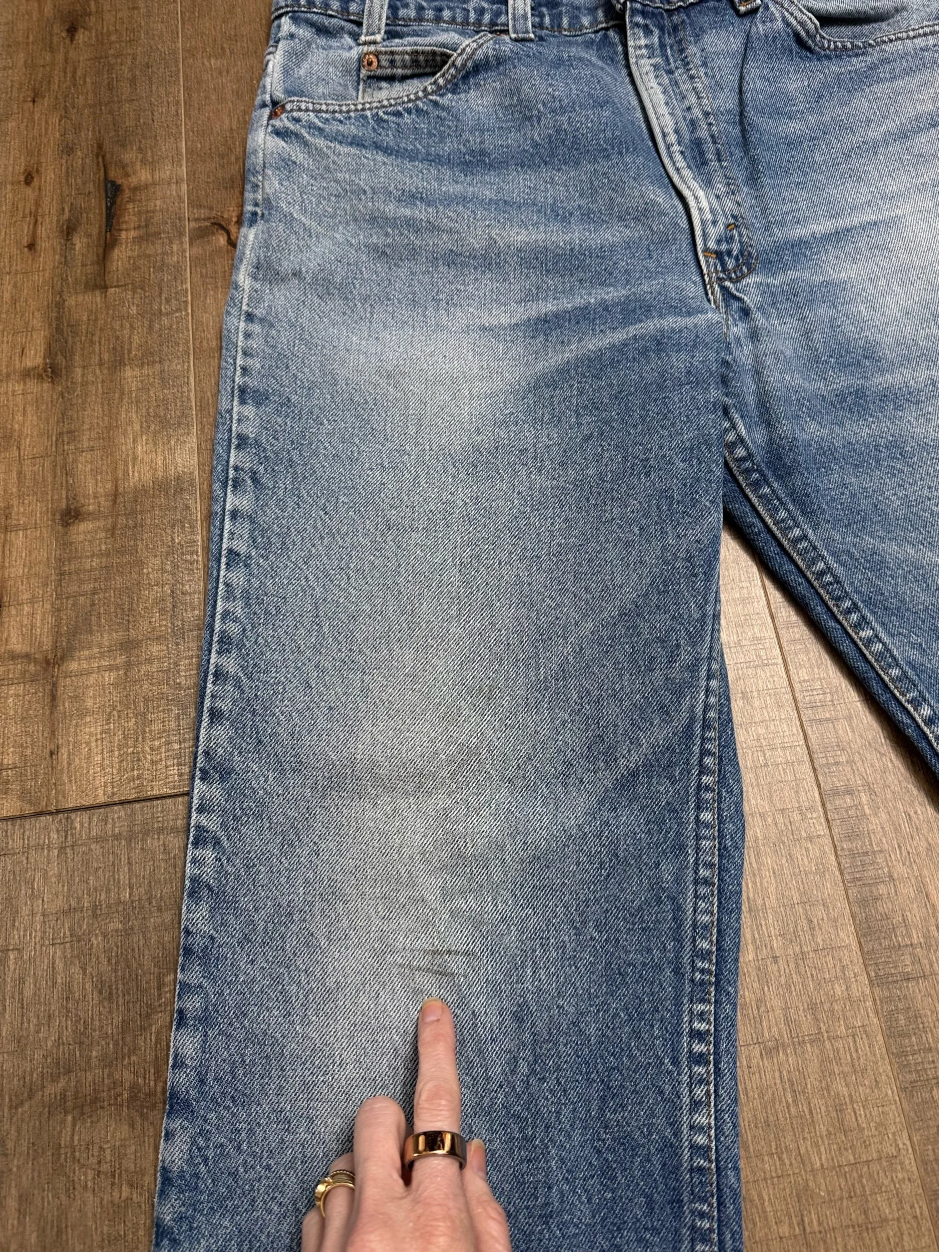 Keep in mind, vintage jeans are not new jeans. Every pair is at least 20 years old, most are older. This means they’ve been worn and likely have signs of wear - i.e. thinning areas, loose threads, signs of previous repair work, discolorations, faint (or not so faint stains), organic distressing, wear at the rivets, wear at the button holes. I do my best to describe these areas/signs of wear&tear, so please - before you buy - understand that you may receive your jeans and there will be signs of aging. Most buy vintage jeans wanting this, but if you want pristine new looking jeans, vintage likely isn’t for you. And that’s A-OK! Also note, the word “vintage” is not synonymous with super worn & faded. Vintage means over 20 years old. An item can be both vintage and still be new or like new condition.