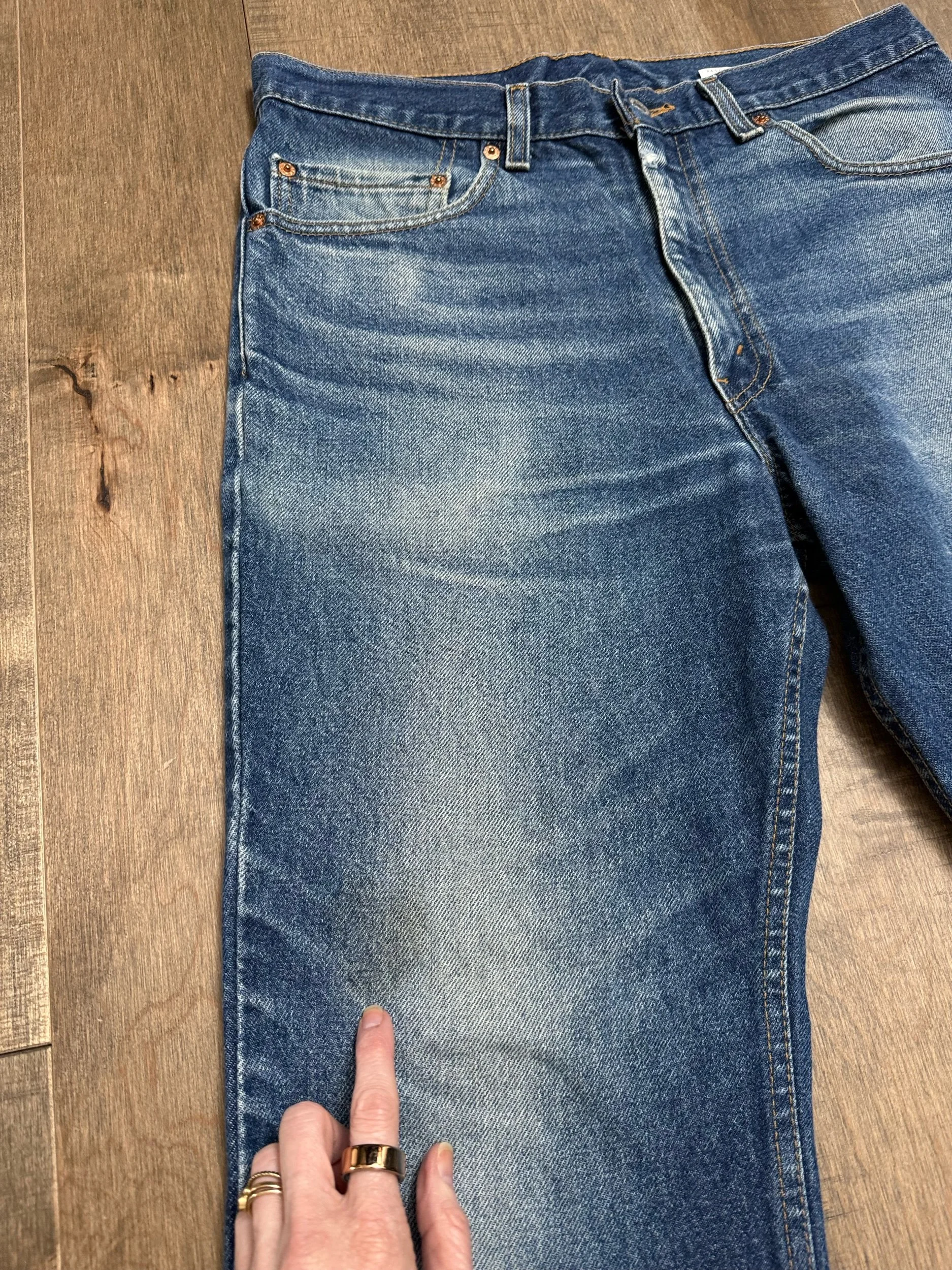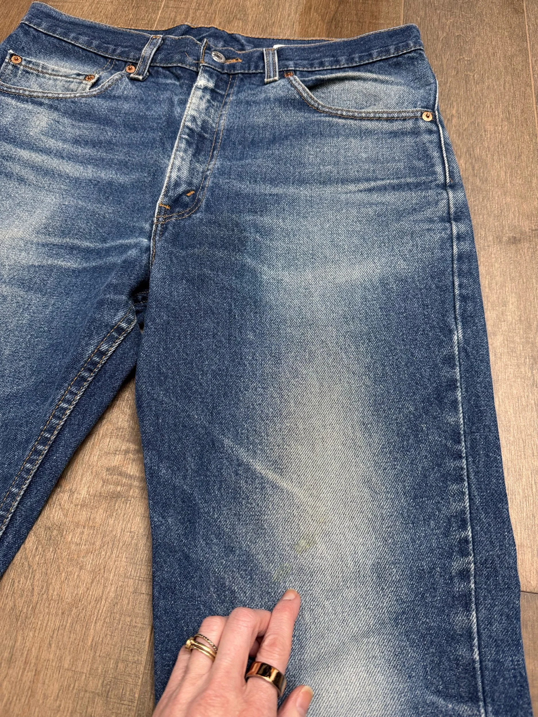 Keep in mind, vintage jeans are not new jeans. Every pair is at least 20 years old, most are older. This means they’ve been worn and likely have signs of wear - i.e. thinning areas, loose threads, signs of previous repair work, discolorations, faint (or not so faint stains), organic distressing, wear at the rivets, wear at the button holes. I do my best to describe these areas/signs of wear&tear, so please - before you buy - understand that you may receive your jeans and there will be signs of aging. Most buy vintage jeans wanting this, but if you want pristine new looking jeans, vintage likely isn’t for you. And that’s A-OK! Also note, the word “vintage” is not synonymous with super worn & faded. Vintage means over 20 years old. An item can be both vintage and still be new or like new condition.