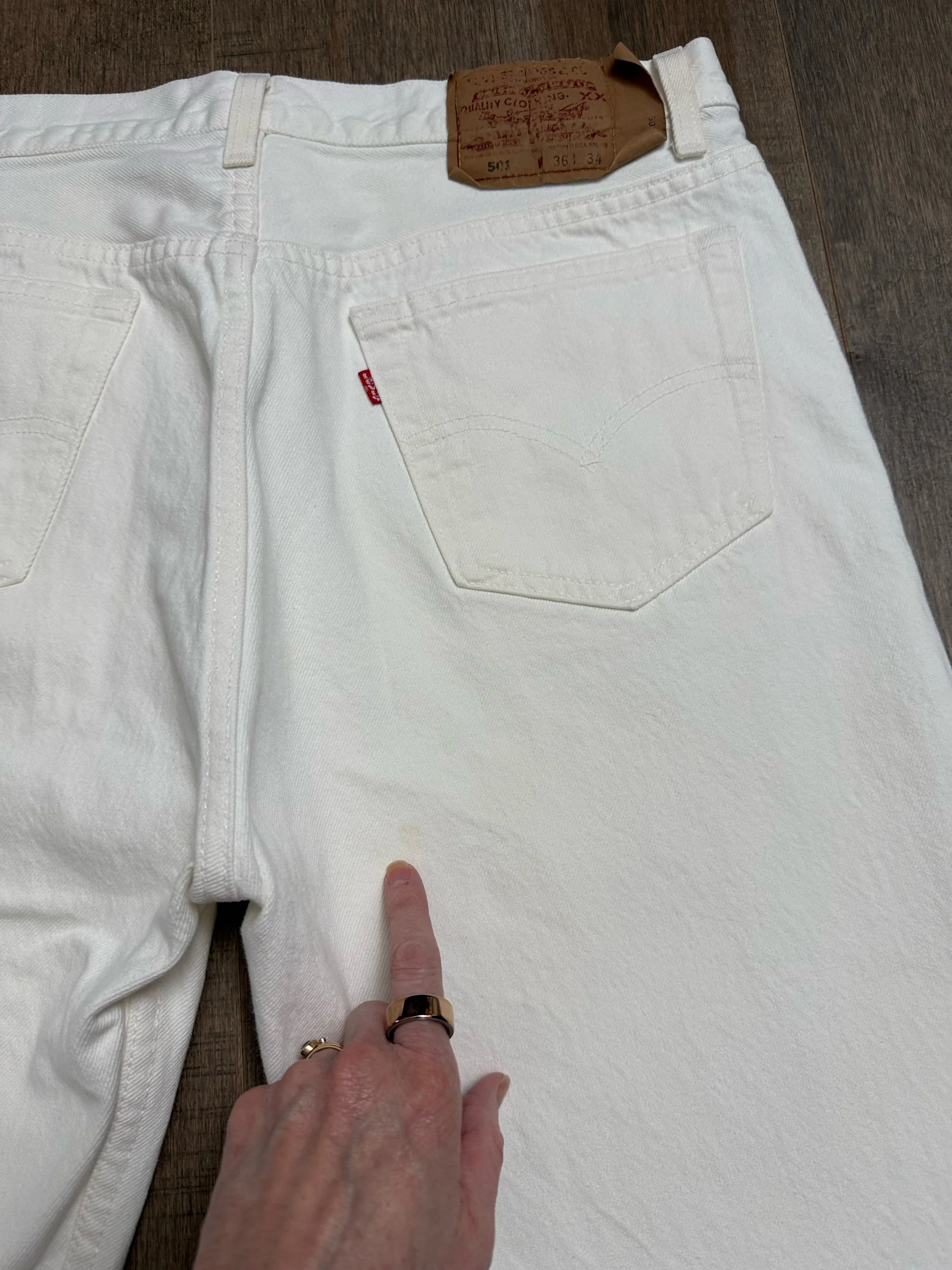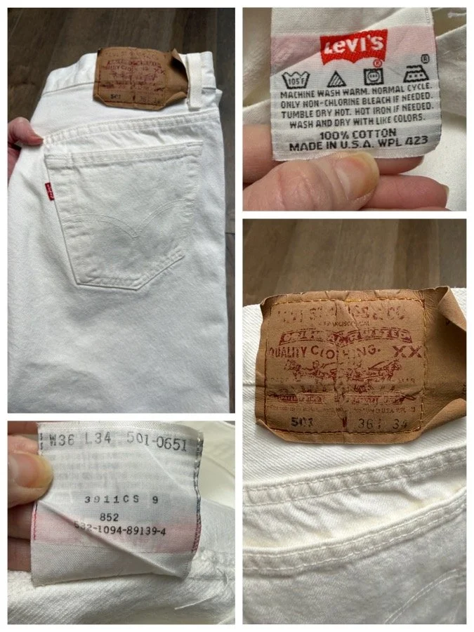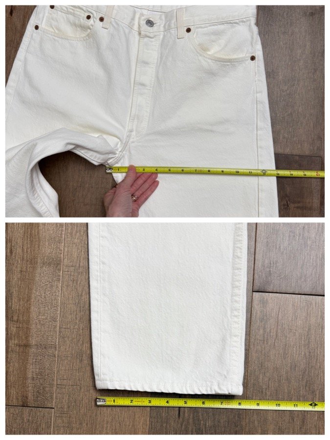 Sold as is. Keep in mind, vintage jeans are not new jeans. Every pair is at least 20 years old, most are older. This means they’ve been worn and likely have signs of wear - i.e. thinning areas, loose threads, signs of previous repair work, discolorations, faint (or not so faint stains), organic distressing, wear at the rivets, wear at the button holes. I do my best to describe these areas/signs of wear&tear, so please - before you buy - understand that you may receive your jeans and there will be signs of aging. Most buy vintage jeans wanting this, but if you want pristine new looking jeans, vintage likely isn’t for you. And that’s A-OK! Also note, the word “vintage” is not synonymous with super worn & faded. Vintage means over 20 years old. An item can be both vintage and still be new or like new condition.