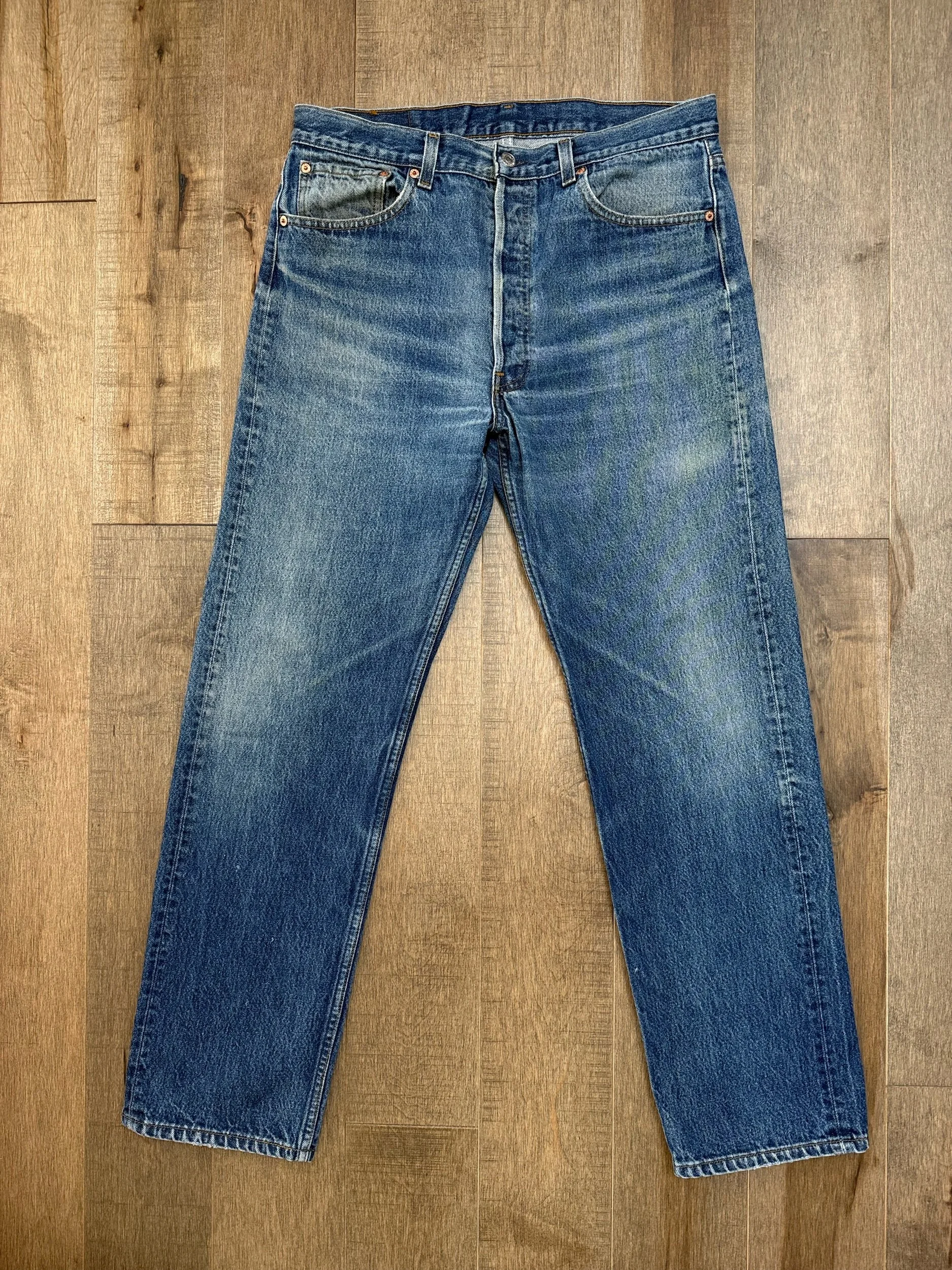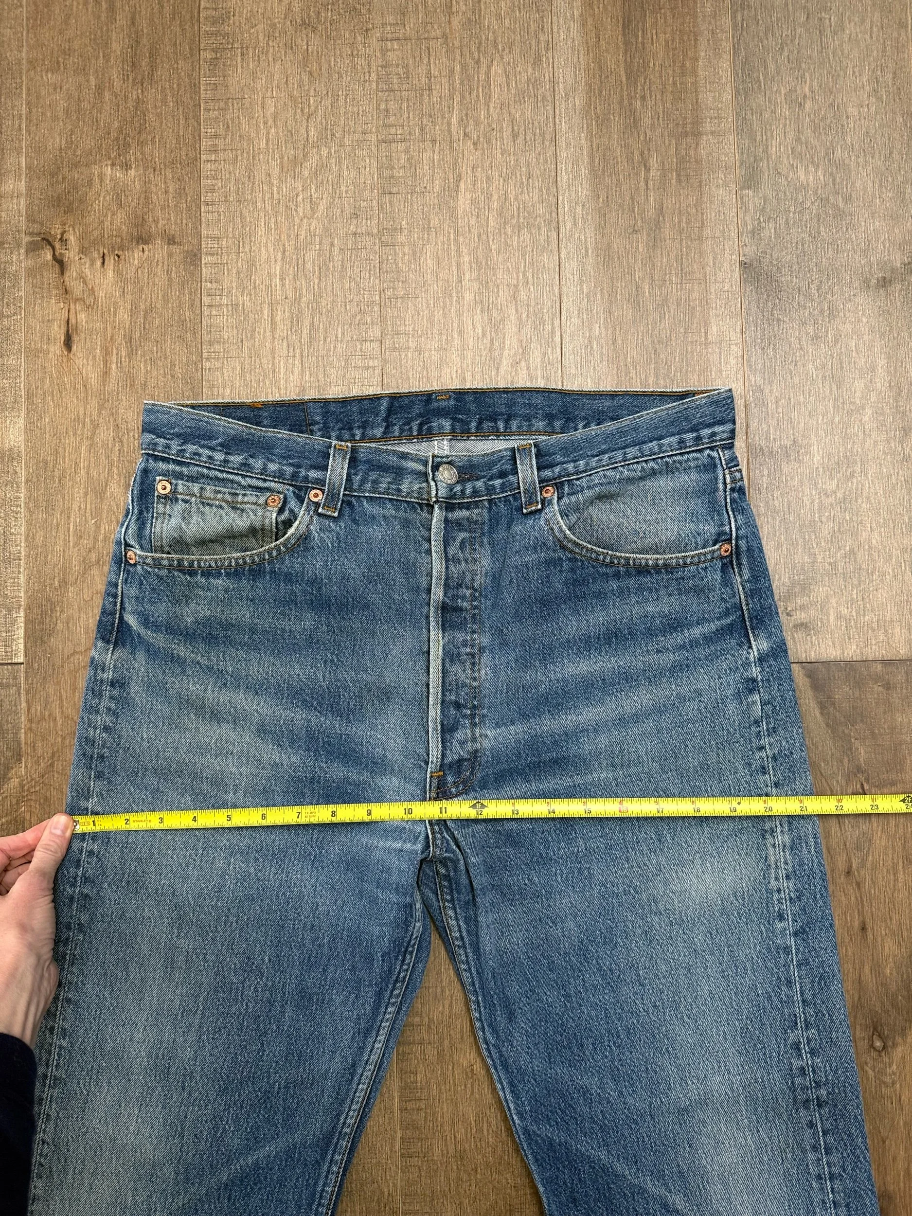 Sold as is. Keep in mind, vintage jeans are not new jeans. Every pair is at least 20 years old, most are older. This means they’ve been worn and likely have signs of wear - i.e. thinning areas, loose threads, signs of previous repair work, discolorations, faint (or not so faint stains), organic distressing, wear at the rivets, wear at the button holes. I do my best to describe these areas/signs of wear&tear, so please - before you buy - understand that you may receive your jeans and there will be signs of aging. Most buy vintage jeans wanting this, but if you want pristine new looking jeans, vintage likely isn’t for you. And that’s A-OK! Also note, the word “vintage” is not synonymous with super worn & faded. Vintage means over 20 years old. An item can be both vintage and still be new or like new condition.