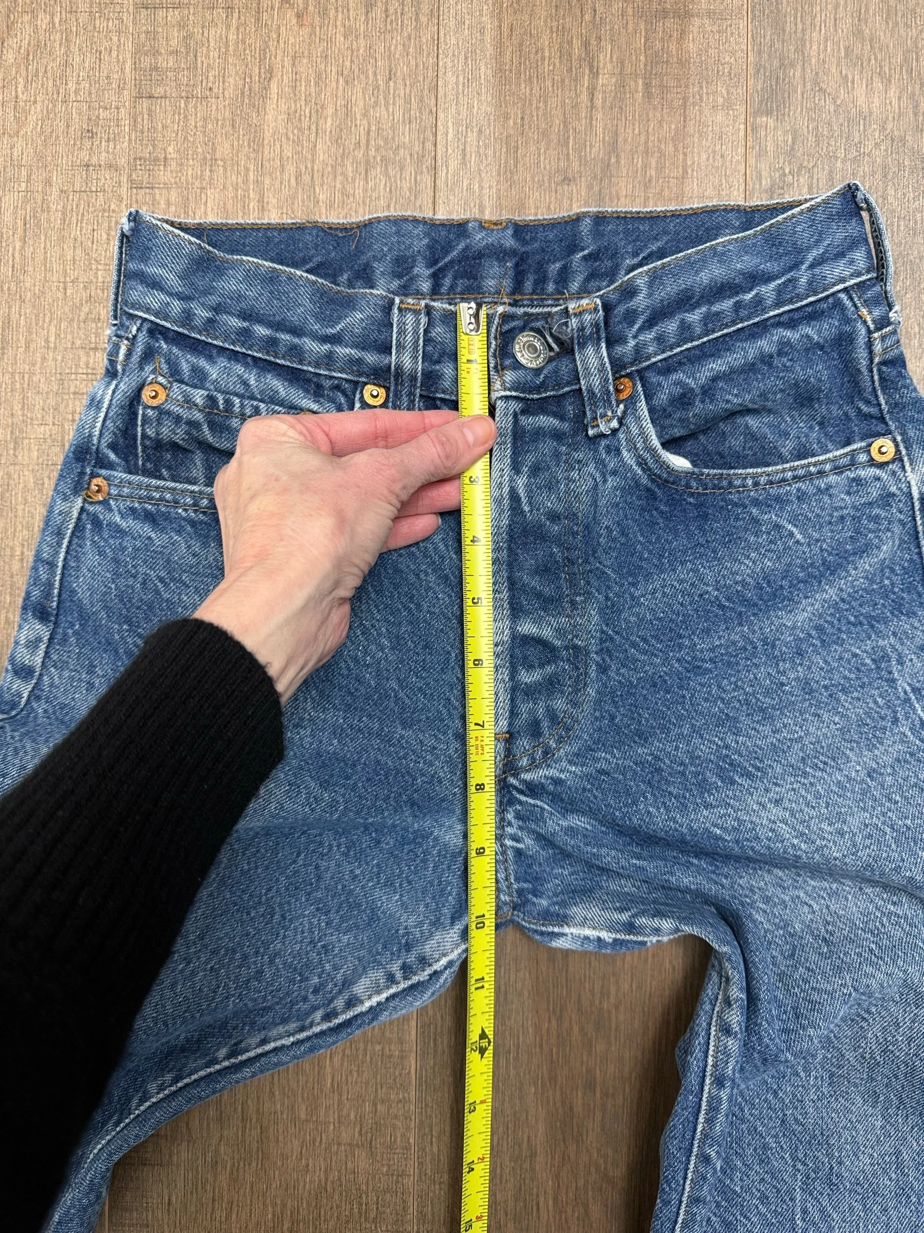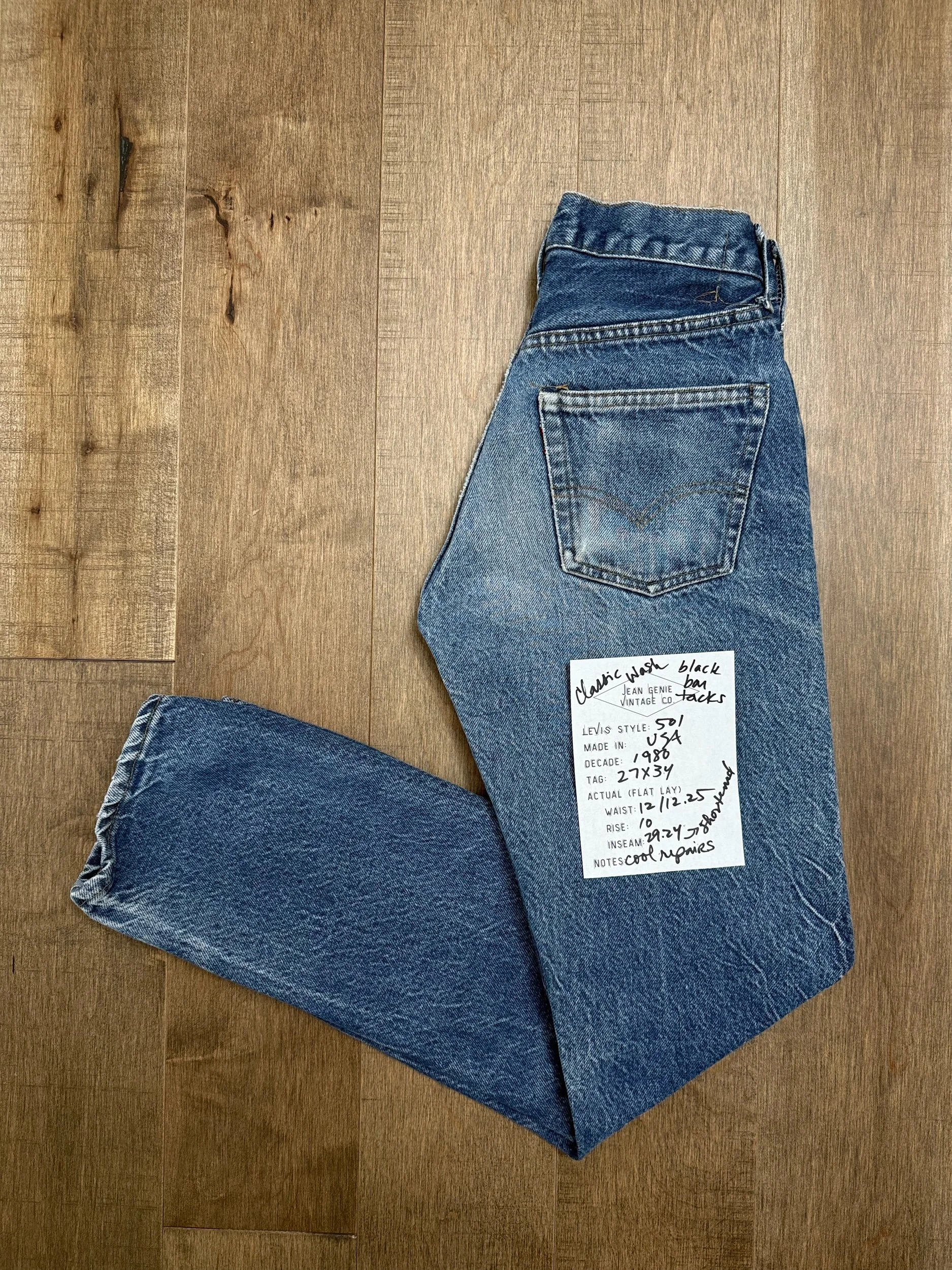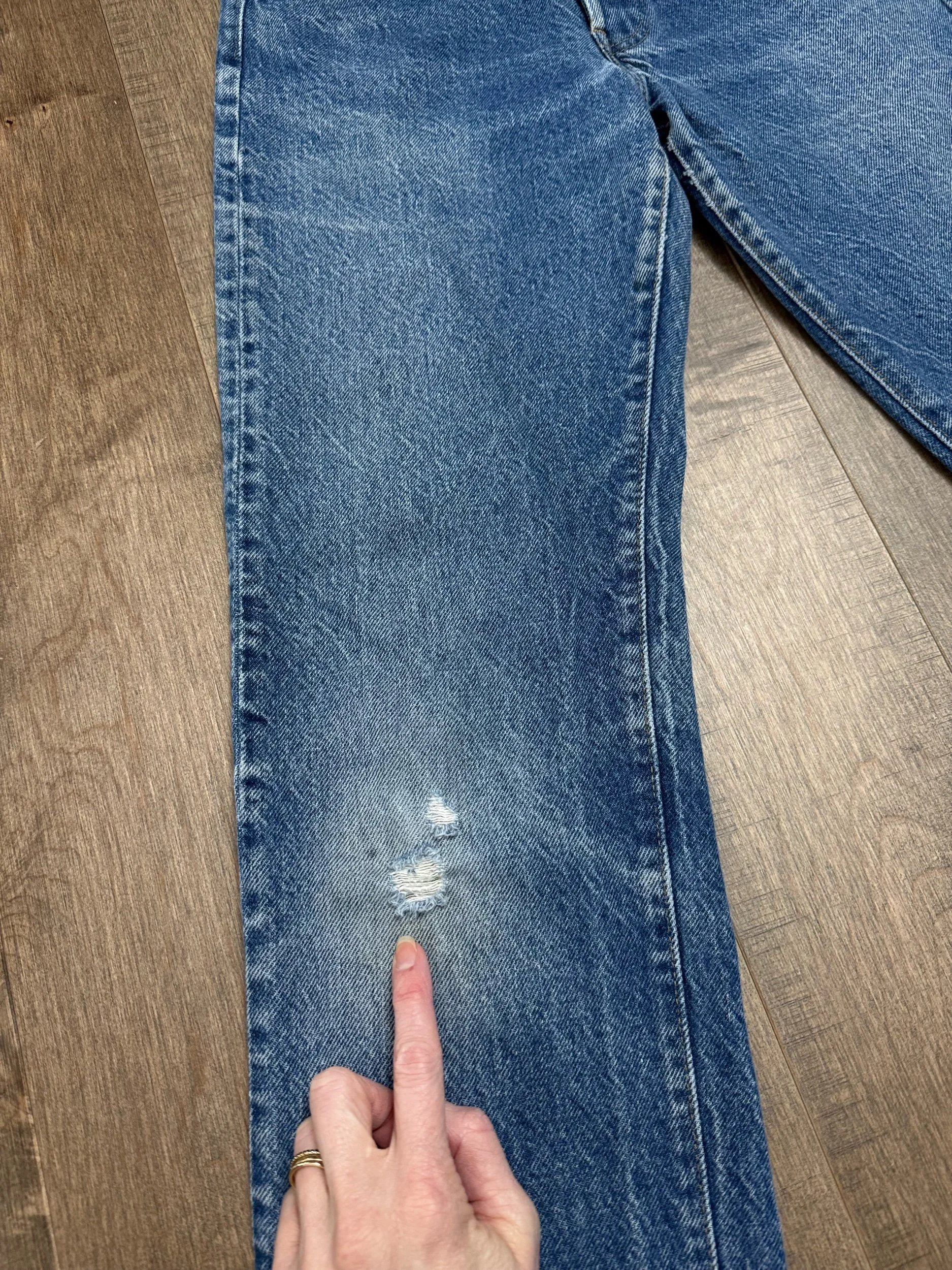 Sold as is. Keep in mind, vintage jeans are not new jeans. Every pair is at least 20 years old, most are older. This means they’ve been worn and likely have signs of wear - i.e. thinning areas, loose threads, signs of previous repair work, discolorations, faint (or not so faint stains), organic distressing, wear at the rivets, wear at the button holes. I do my best to describe these areas/signs of wear&tear, so please - before you buy - understand that you may receive your jeans and there will be signs of aging. Most buy vintage jeans wanting this, but if you want pristine new looking jeans, vintage likely isn’t for you. And that’s A-OK! Also note, the word “vintage” is not synonymous with super worn & faded. Vintage means over 20 years old. An item can be both vintage and still be new or like new condition.