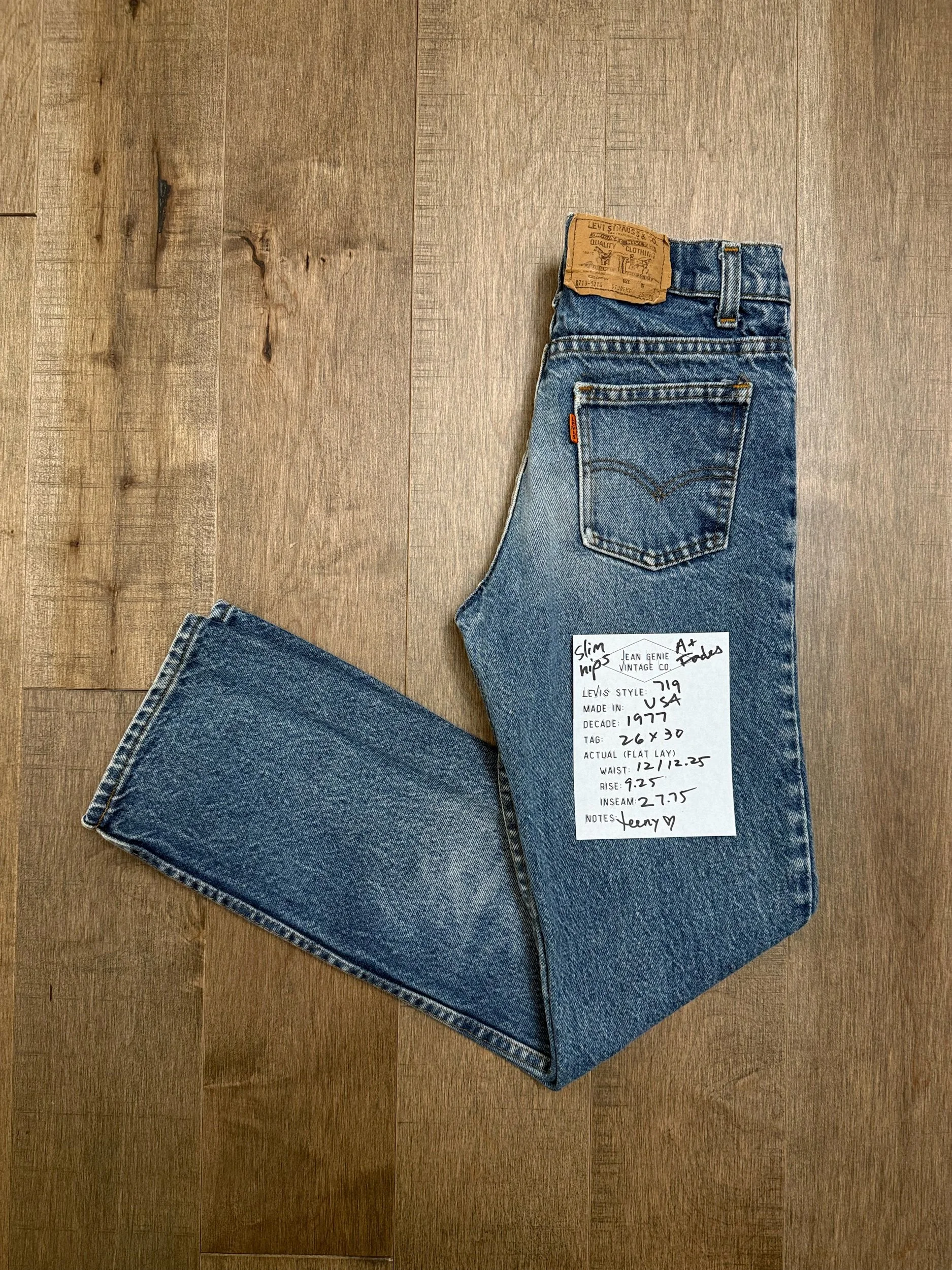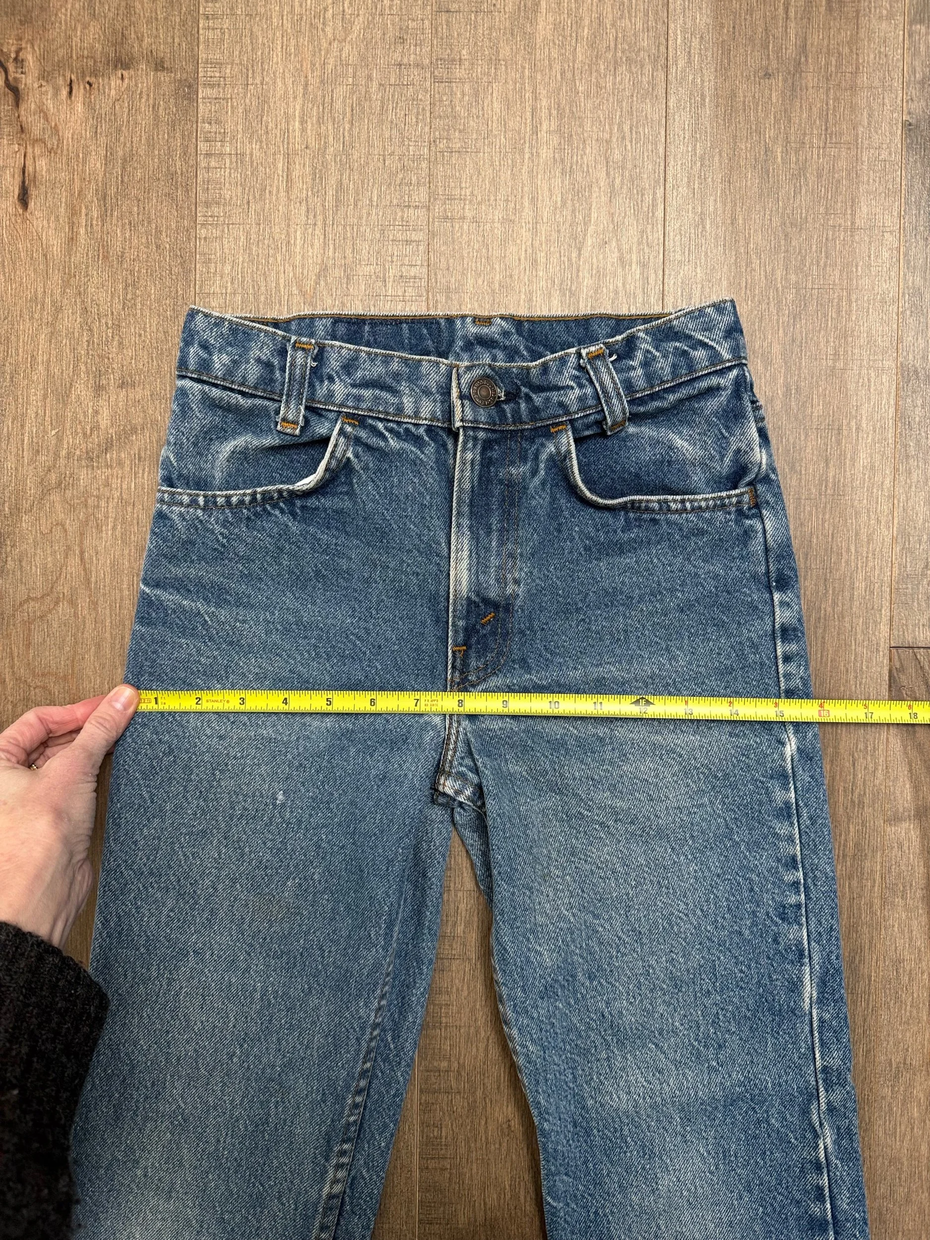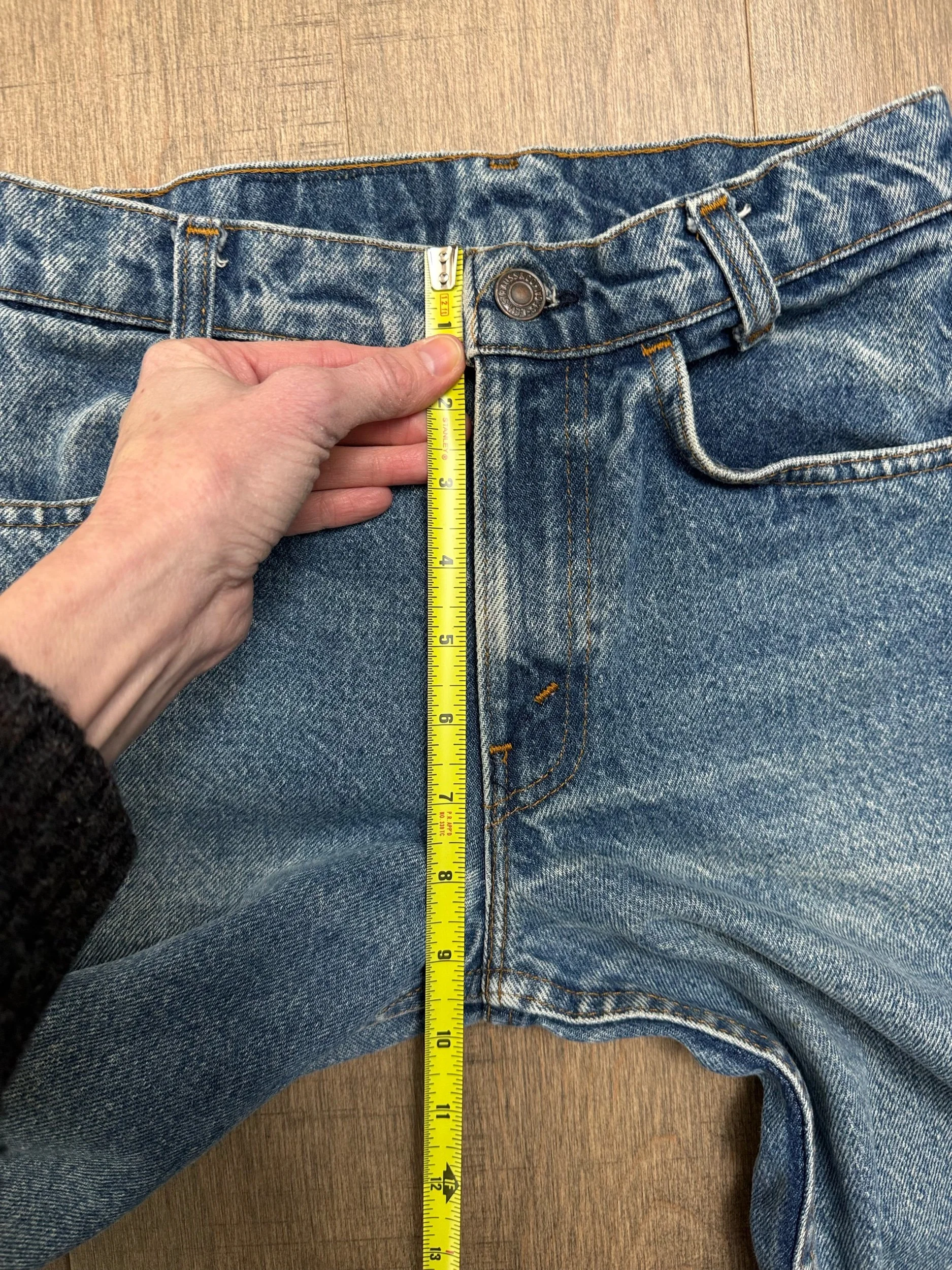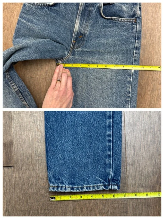 Keep in mind, vintage jeans are not new jeans. Every pair is at least 20 years old, most are older. This means they’ve been worn and likely have signs of wear - i.e. thinning areas, loose threads, signs of previous repair work, discolorations, faint (or not so faint stains), organic distressing, wear at the rivets, wear at the button holes. I do my best to describe these areas/signs of wear&tear, so please - before you buy - understand that you may receive your jeans and there will be signs of aging. Most buy vintage jeans wanting this, but if you want pristine new looking jeans, vintage likely isn’t for you. And that’s A-OK! Also note, the word “vintage” is not synonymous with super worn & faded. Vintage means over 20 years old. An item can be both vintage and still be new or like new condition.