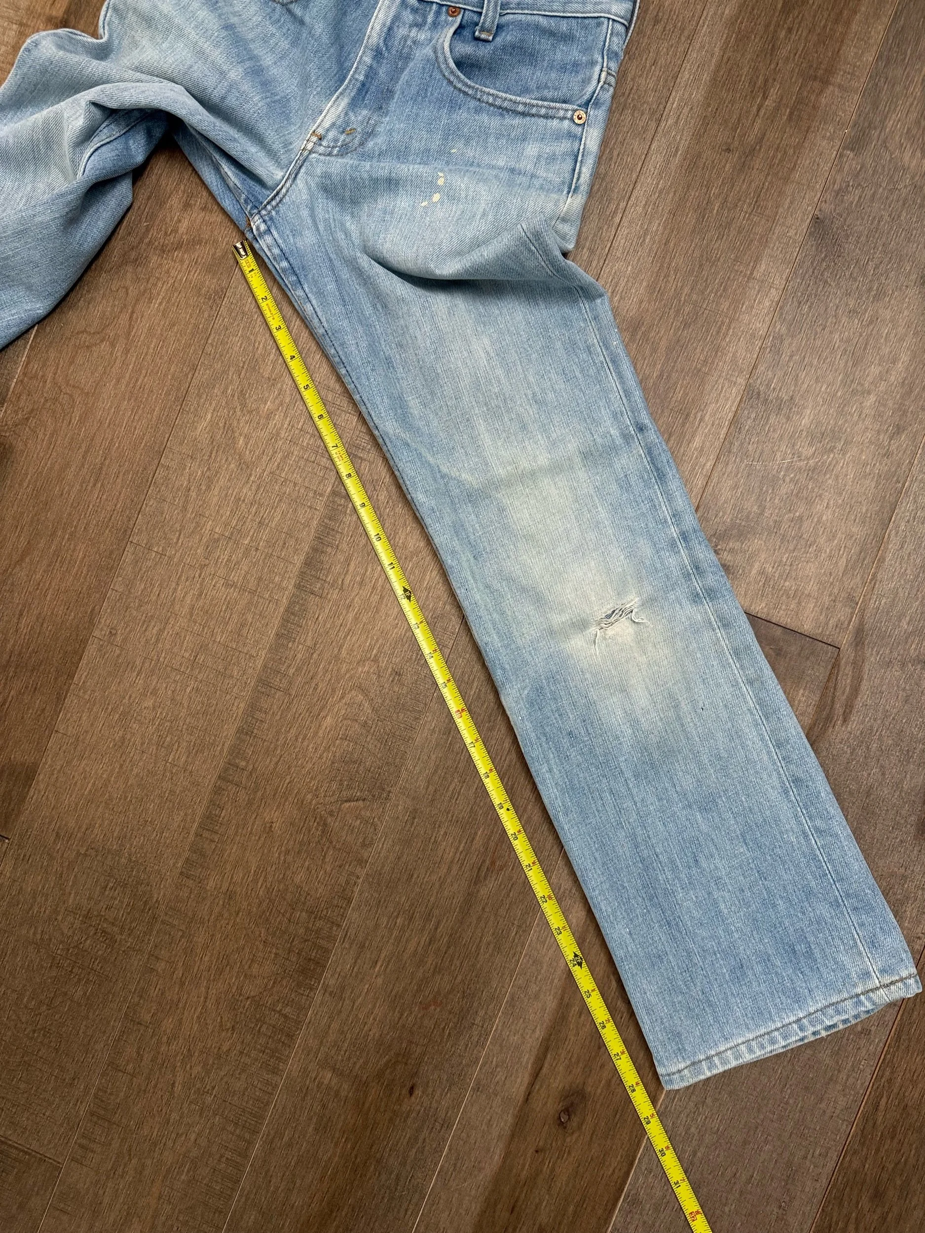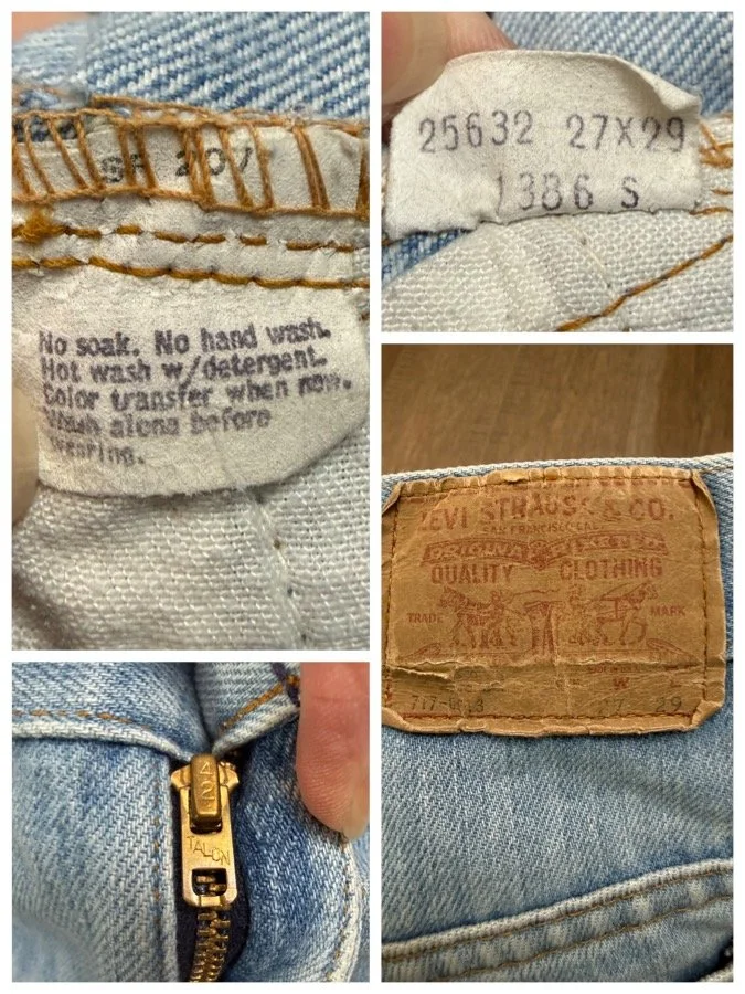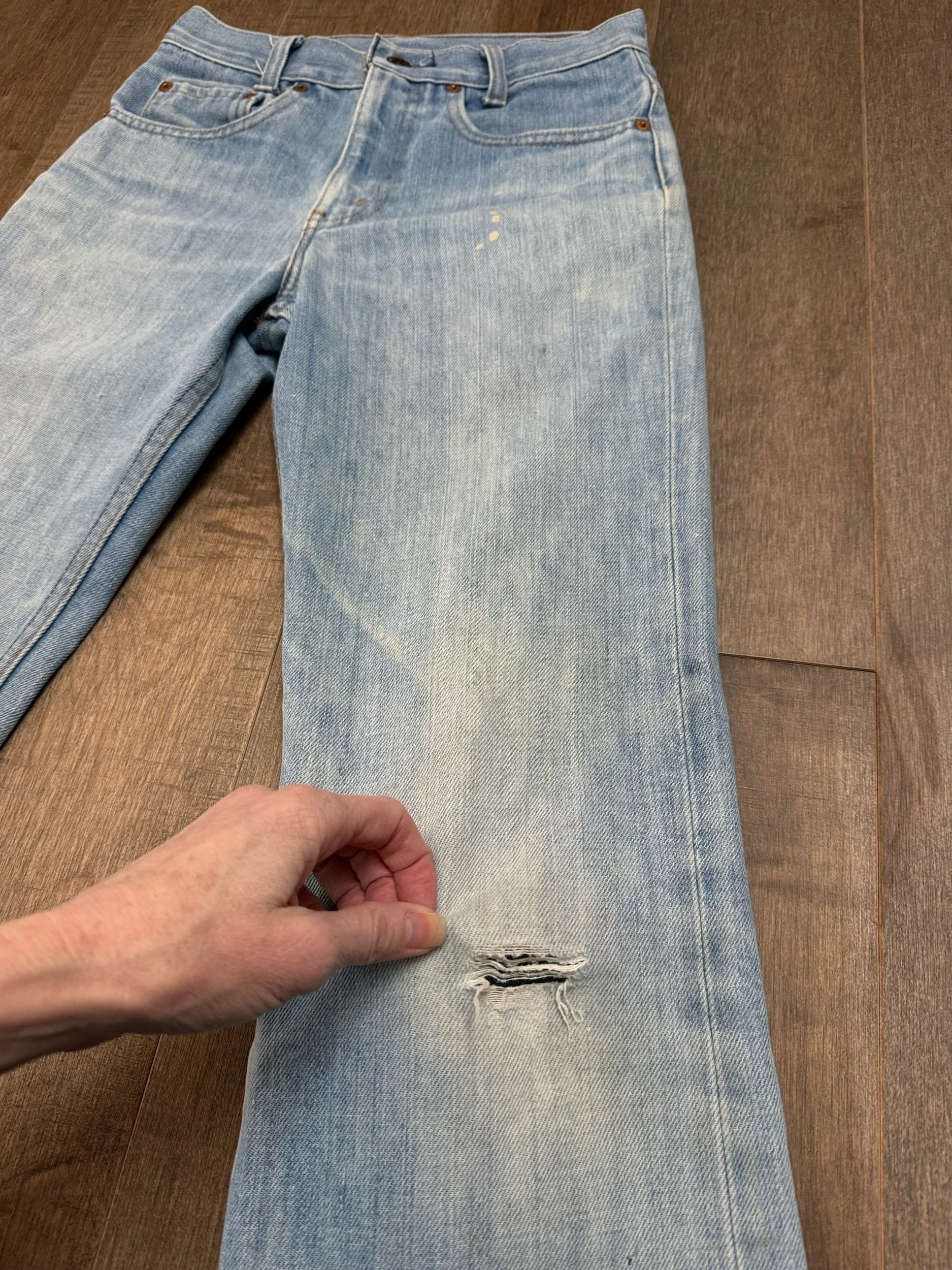 Keep in mind, vintage jeans are not new jeans. Every pair is at least 20 years old, most are older. This means they’ve been worn and likely have signs of wear - i.e. thinning areas, loose threads, signs of previous repair work, discolorations, faint (or not so faint stains), organic distressing, wear at the rivets, wear at the button holes. I do my best to describe these areas/signs of wear&tear, so please - before you buy - understand that you may receive your jeans and there will be signs of aging. Most buy vintage jeans wanting this, but if you want pristine new looking jeans, vintage likely isn’t for you. And that’s A-OK! Also note, the word “vintage” is not synonymous with super worn & faded. Vintage means over 20 years old. An item can be both vintage and still be new or like new condition.