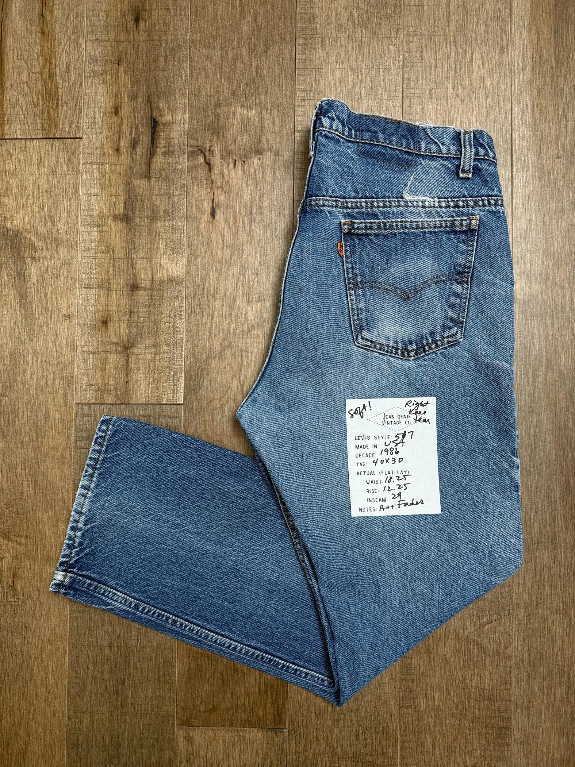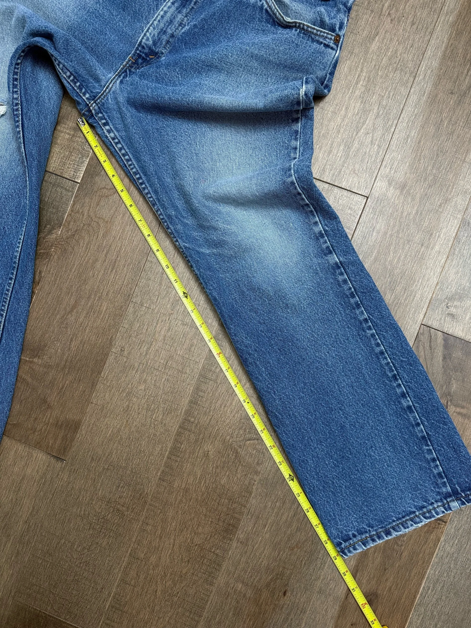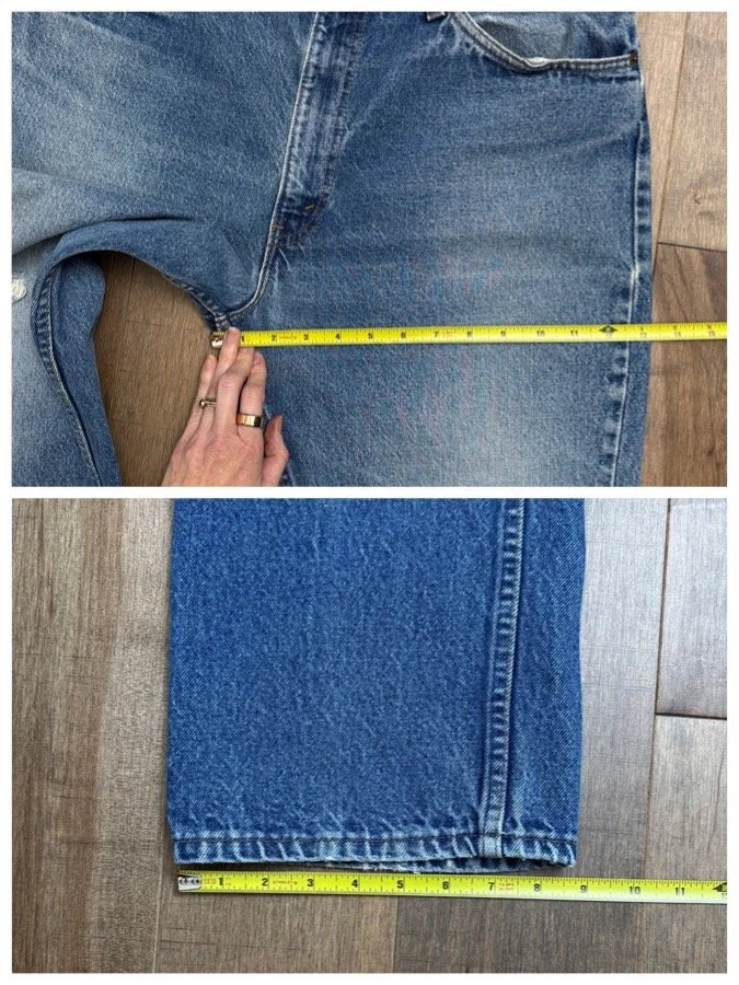 Keep in mind, vintage jeans are not new jeans. Every pair is at least 20 years old, most are older. This means they’ve been worn and likely have signs of wear - i.e. thinning areas, loose threads, signs of previous repair work, discolorations, faint (or not so faint stains), organic distressing, wear at the rivets, wear at the button holes. I do my best to describe these areas/signs of wear&tear, so please - before you buy - understand that you may receive your jeans and there will be signs of aging. Most buy vintage jeans wanting this, but if you want pristine new looking jeans, vintage likely isn’t for you. And that’s A-OK! Also note, the word “vintage” is not synonymous with super worn & faded. Vintage means over 20 years old. An item can be both vintage and still be new or like new condition.