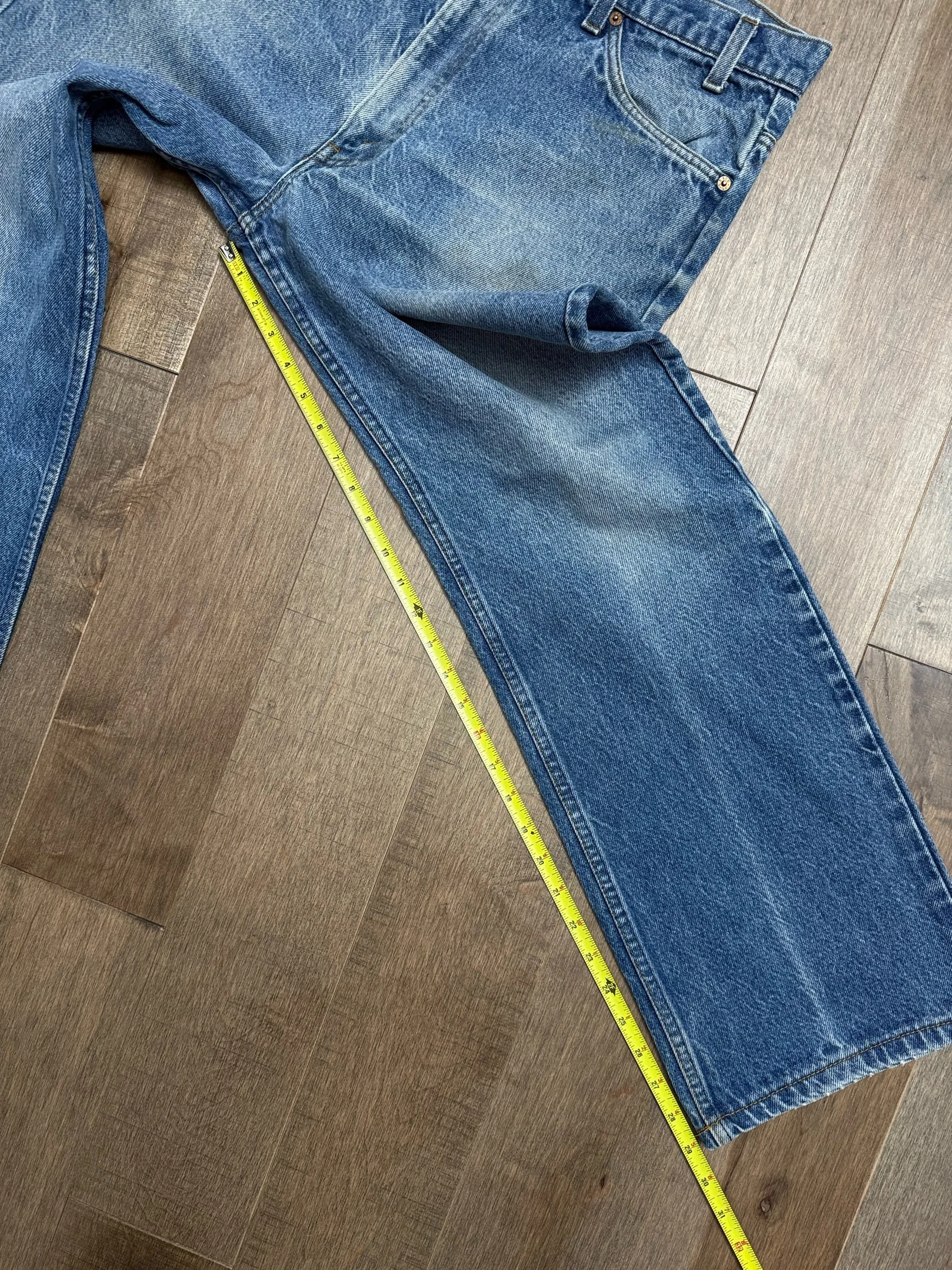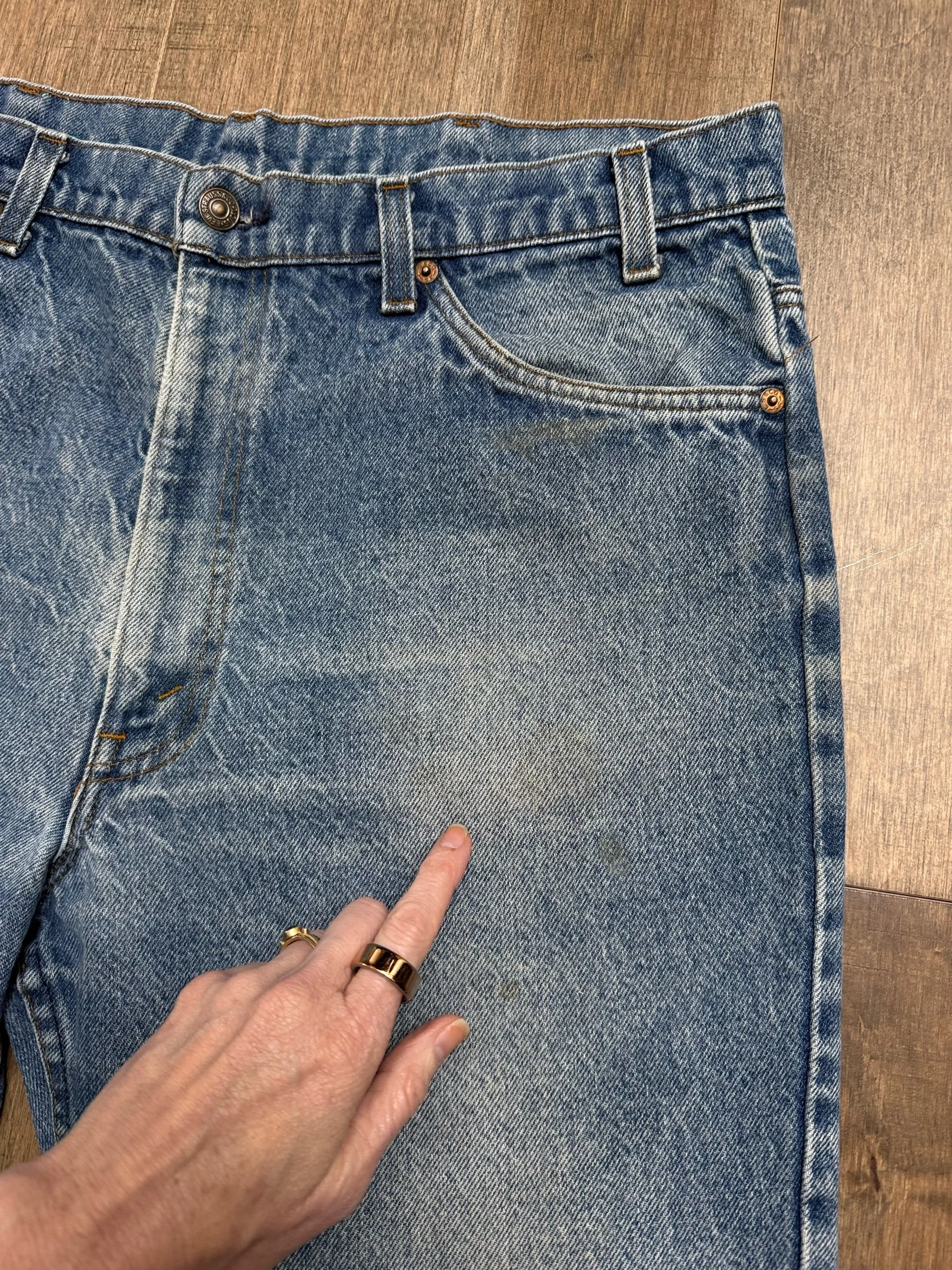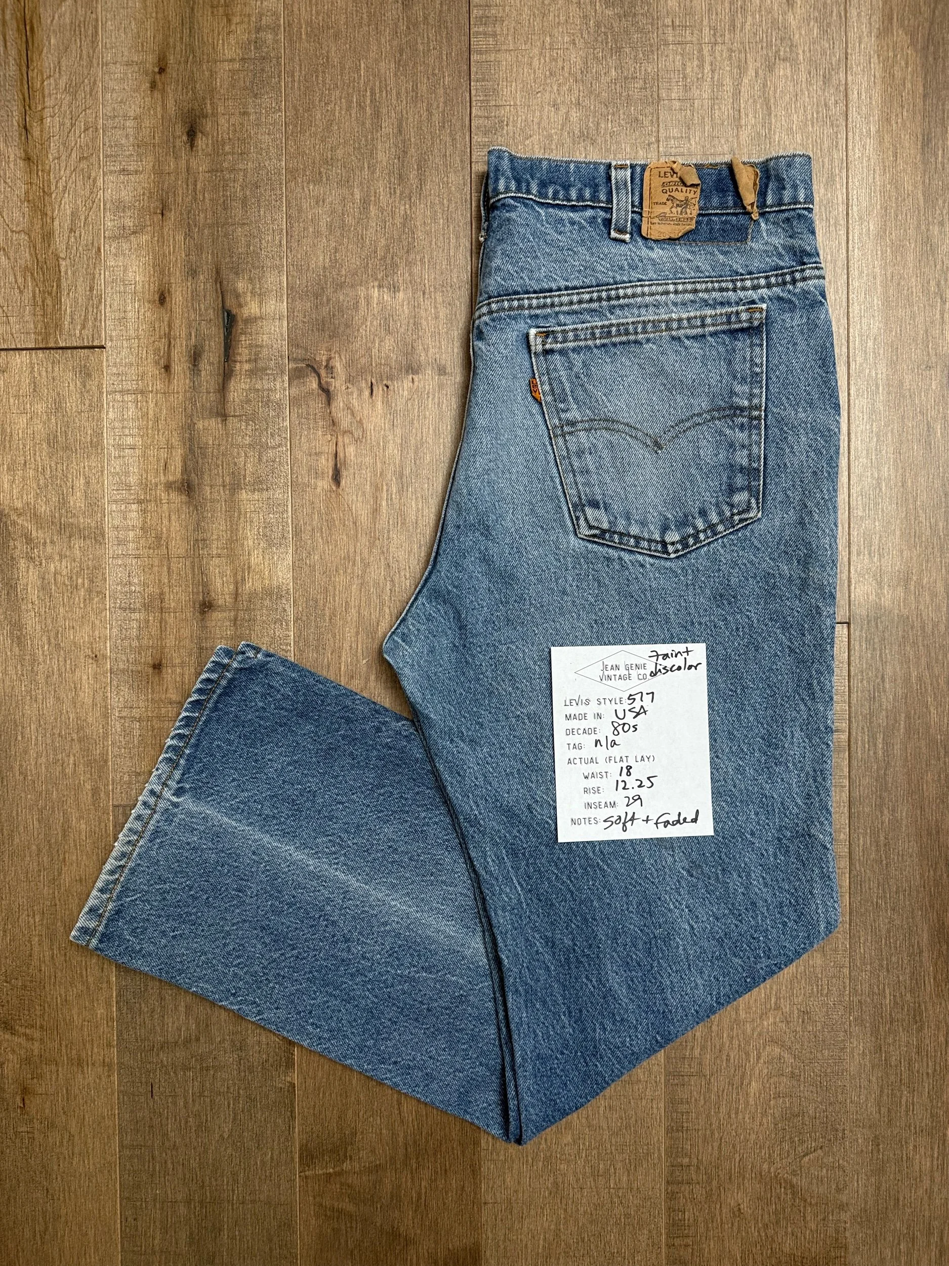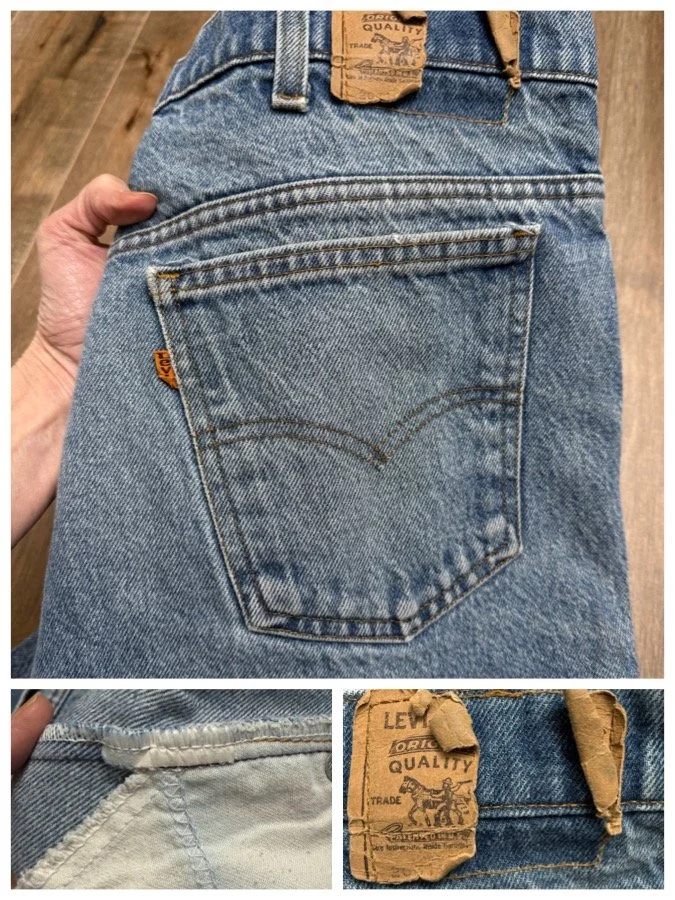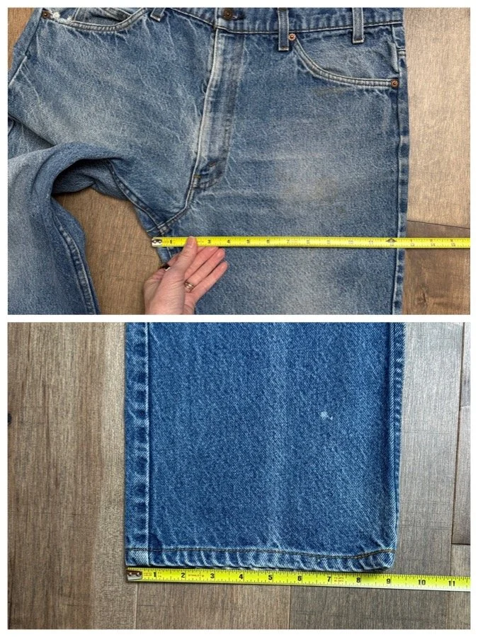 Keep in mind, vintage jeans are not new jeans. Every pair is at least 20 years old, most are older. This means they’ve been worn and likely have signs of wear - i.e. thinning areas, loose threads, signs of previous repair work, discolorations, faint (or not so faint stains), organic distressing, wear at the rivets, wear at the button holes. I do my best to describe these areas/signs of wear&tear, so please - before you buy - understand that you may receive your jeans and there will be signs of aging. Most buy vintage jeans wanting this, but if you want pristine new looking jeans, vintage likely isn’t for you. And that’s A-OK! Also note, the word “vintage” is not synonymous with super worn & faded. Vintage means over 20 years old. An item can be both vintage and still be new or like new condition.