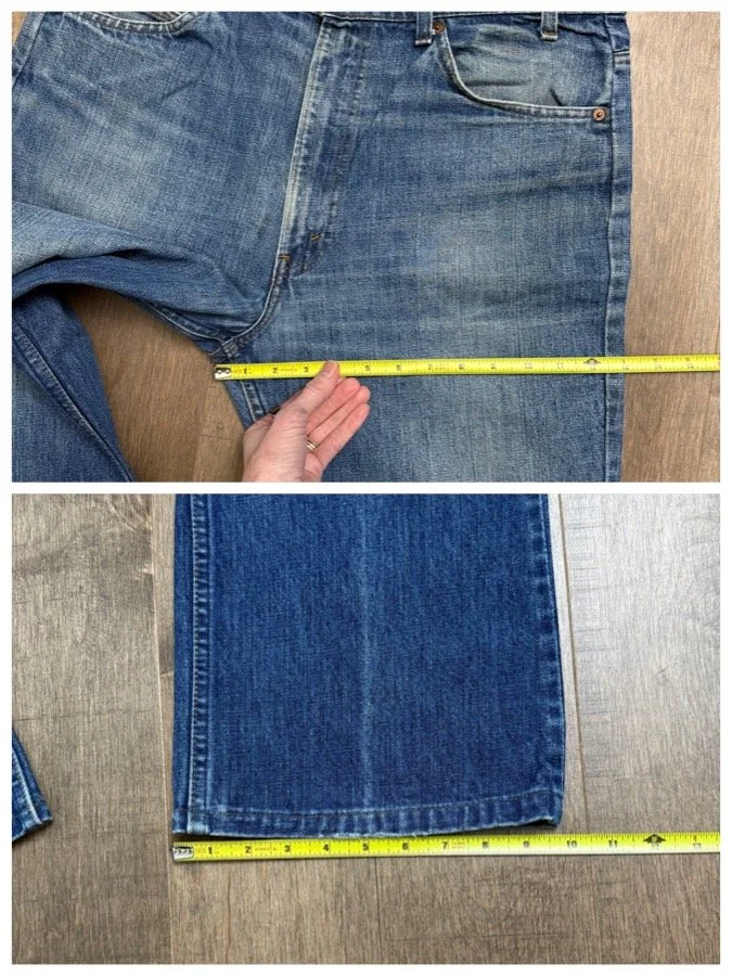 Keep in mind, vintage jeans are not new jeans. Every pair is at least 20 years old, most are older. This means they’ve been worn and likely have signs of wear - i.e. thinning areas, loose threads, signs of previous repair work, discolorations, faint (or not so faint stains), organic distressing, wear at the rivets, wear at the button holes. I do my best to describe these areas/signs of wear&tear, so please - before you buy - understand that you may receive your jeans and there will be signs of aging. Most buy vintage jeans wanting this, but if you want pristine new looking jeans, vintage likely isn’t for you. And that’s A-OK! Also note, the word “vintage” is not synonymous with super worn & faded. Vintage means over 20 years old. An item can be both vintage and still be new or like new condition.