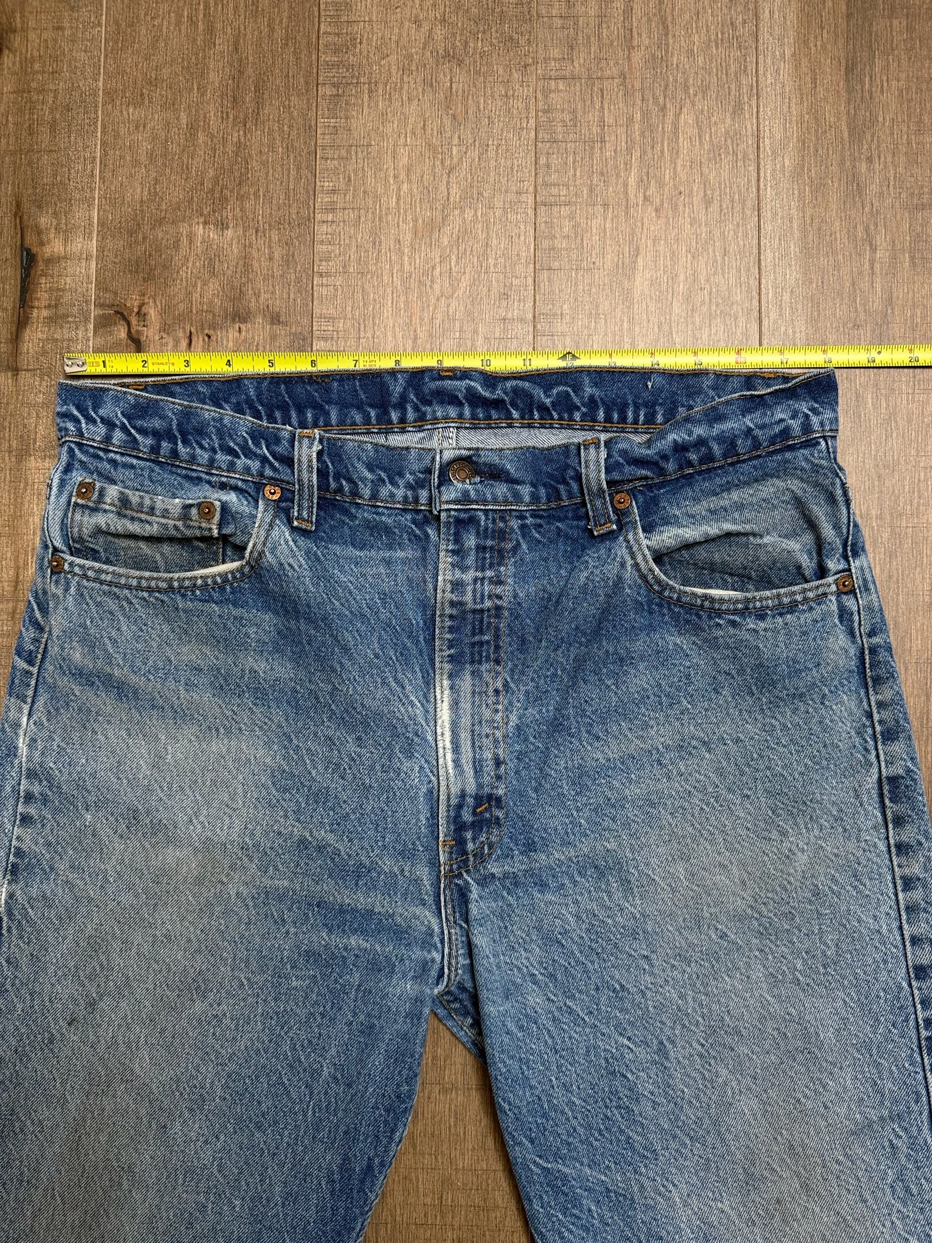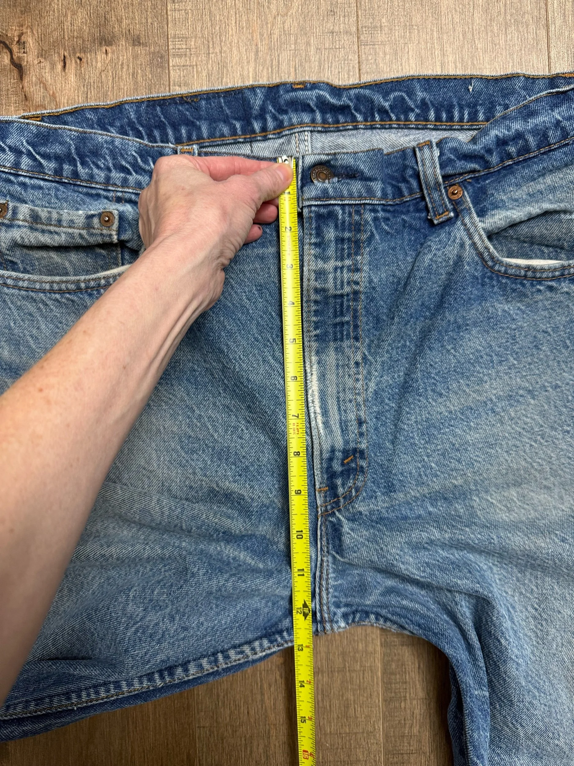 Keep in mind, vintage jeans are not new jeans. Every pair is at least 20 years old, most are older. This means they’ve been worn and likely have signs of wear - i.e. thinning areas, loose threads, signs of previous repair work, discolorations, faint (or not so faint stains), organic distressing, wear at the rivets, wear at the button holes. I do my best to describe these areas/signs of wear&tear, so please - before you buy - understand that you may receive your jeans and there will be signs of aging. Most buy vintage jeans wanting this, but if you want pristine new looking jeans, vintage likely isn’t for you. And that’s A-OK! Also note, the word “vintage” is not synonymous with super worn & faded. Vintage means over 20 years old. An item can be both vintage and still be new or like new condition.
