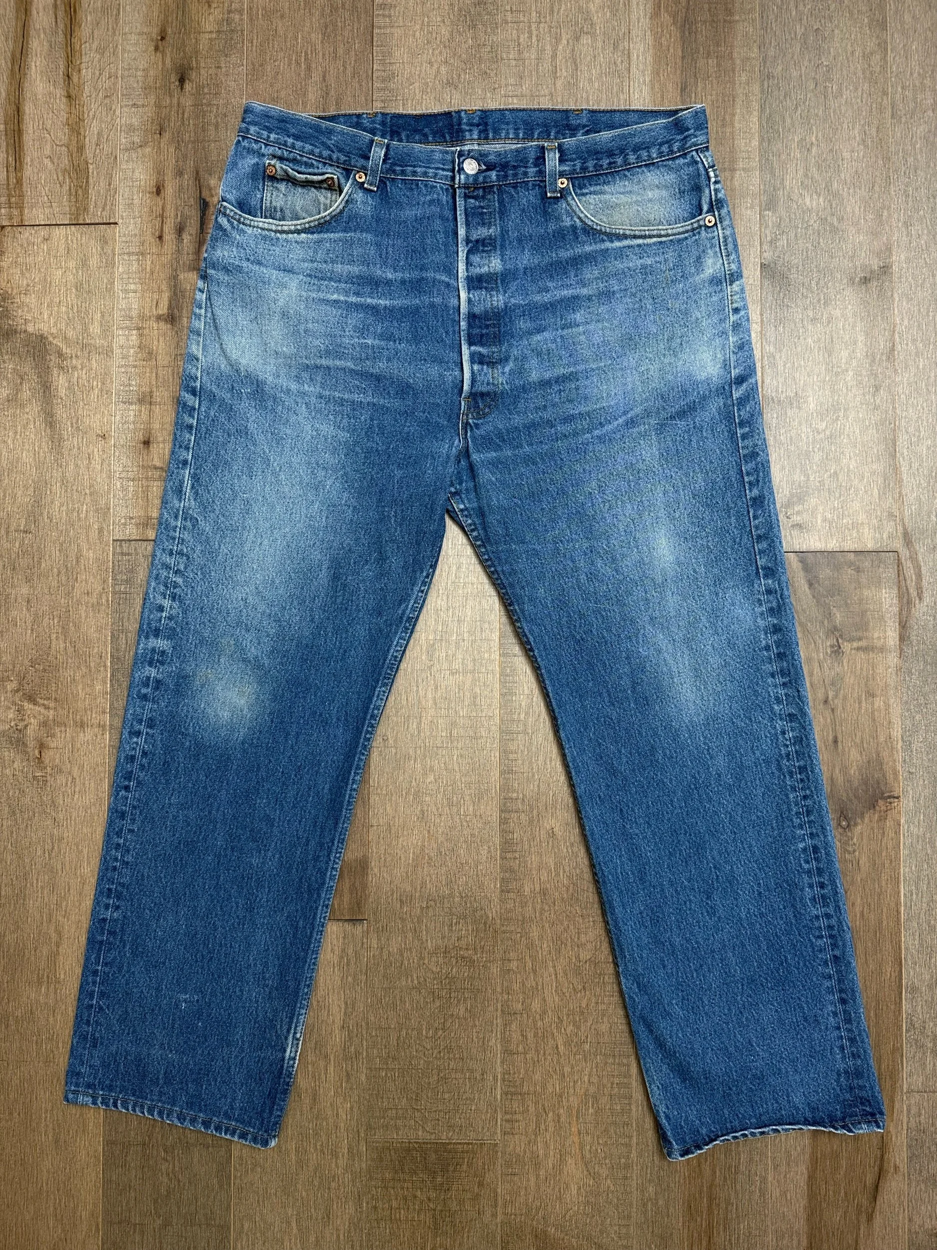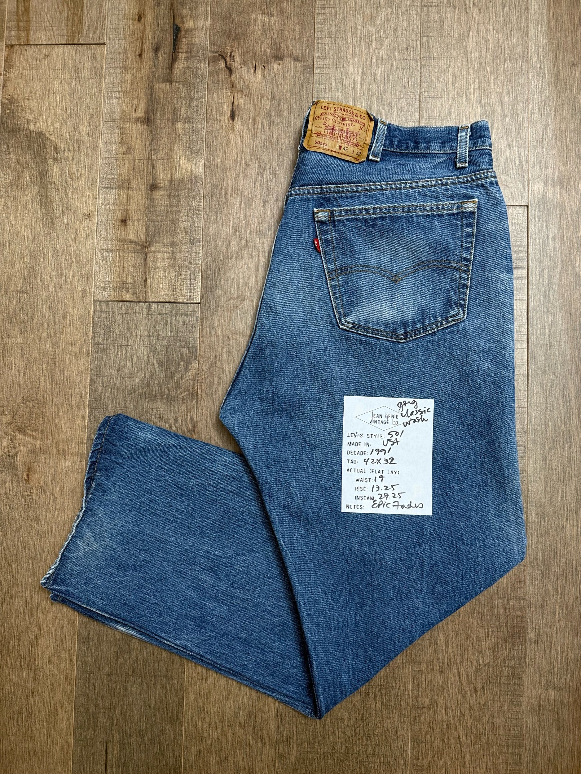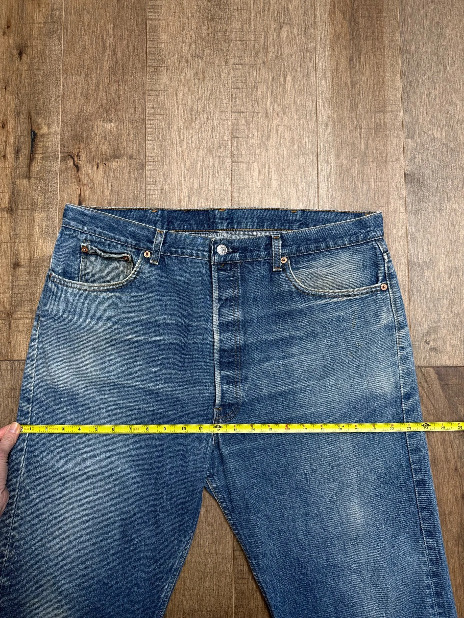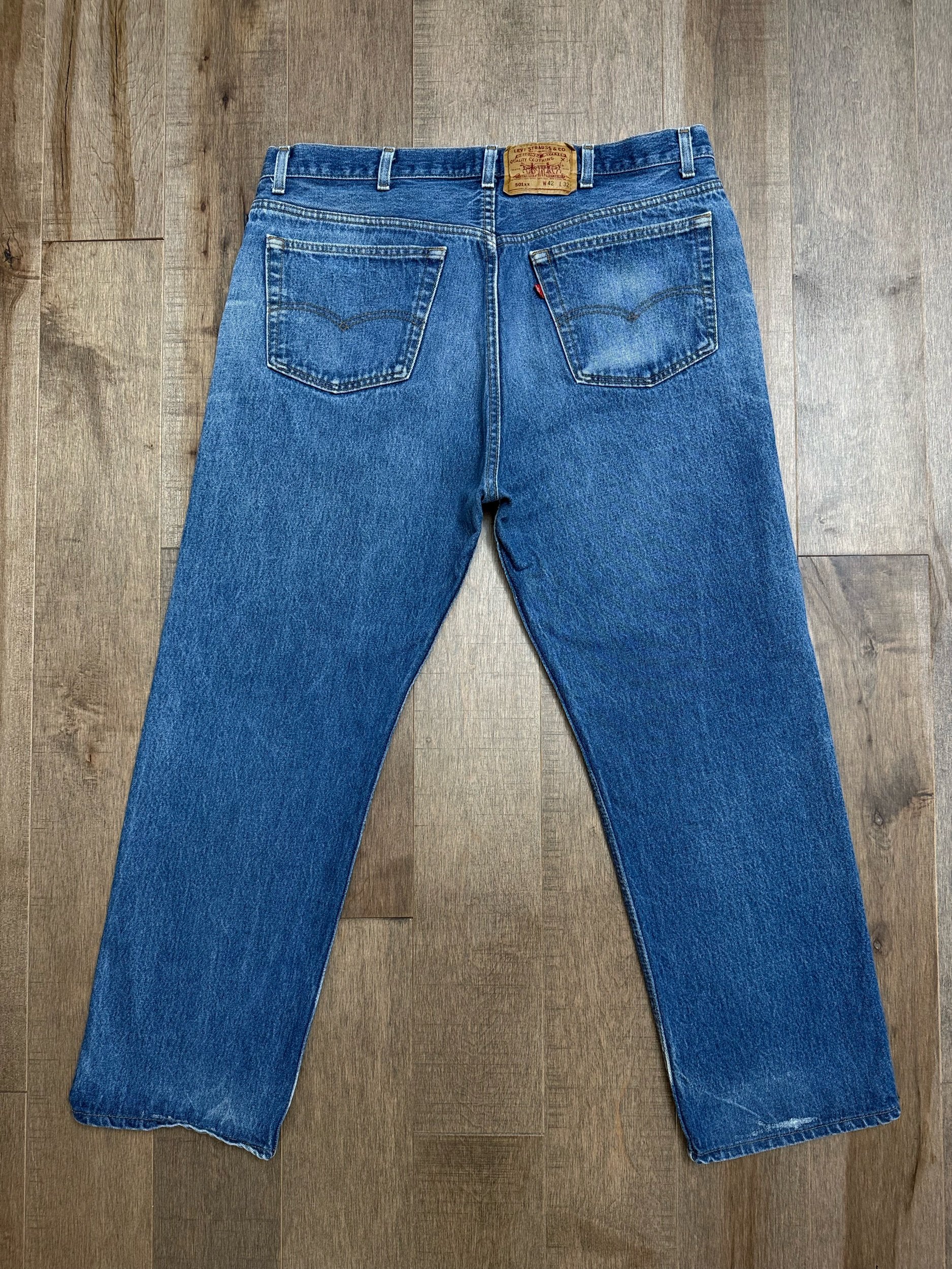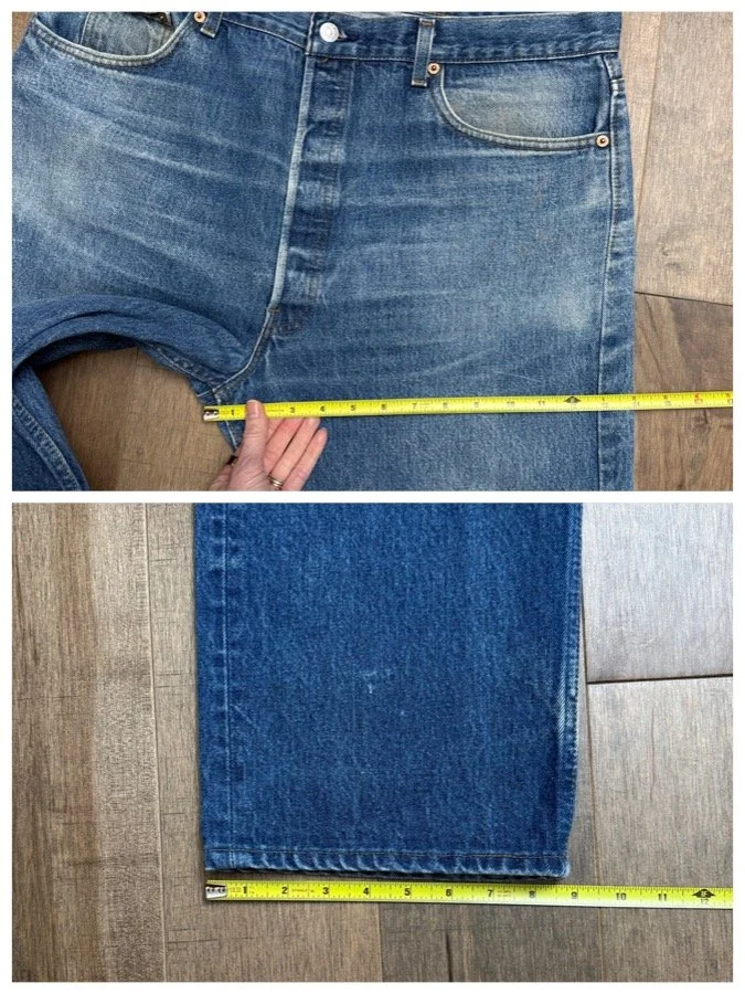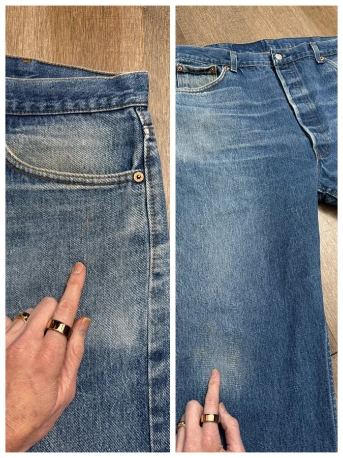 Sold as is. Keep in mind, vintage jeans are not new jeans. Every pair is at least 20 years old, most are older. This means they’ve been worn and likely have signs of wear - i.e. thinning areas, loose threads, signs of previous repair work, discolorations, faint (or not so faint stains), organic distressing, wear at the rivets, wear at the button holes. I do my best to describe these areas/signs of wear&tear, so please - before you buy - understand that you may receive your jeans and there will be signs of aging. Most buy vintage jeans wanting this, but if you want pristine new looking jeans, vintage likely isn’t for you. And that’s A-OK! Also note, the word “vintage” is not synonymous with super worn & faded. Vintage means over 20 years old. An item can be both vintage and still be new or like new condition.