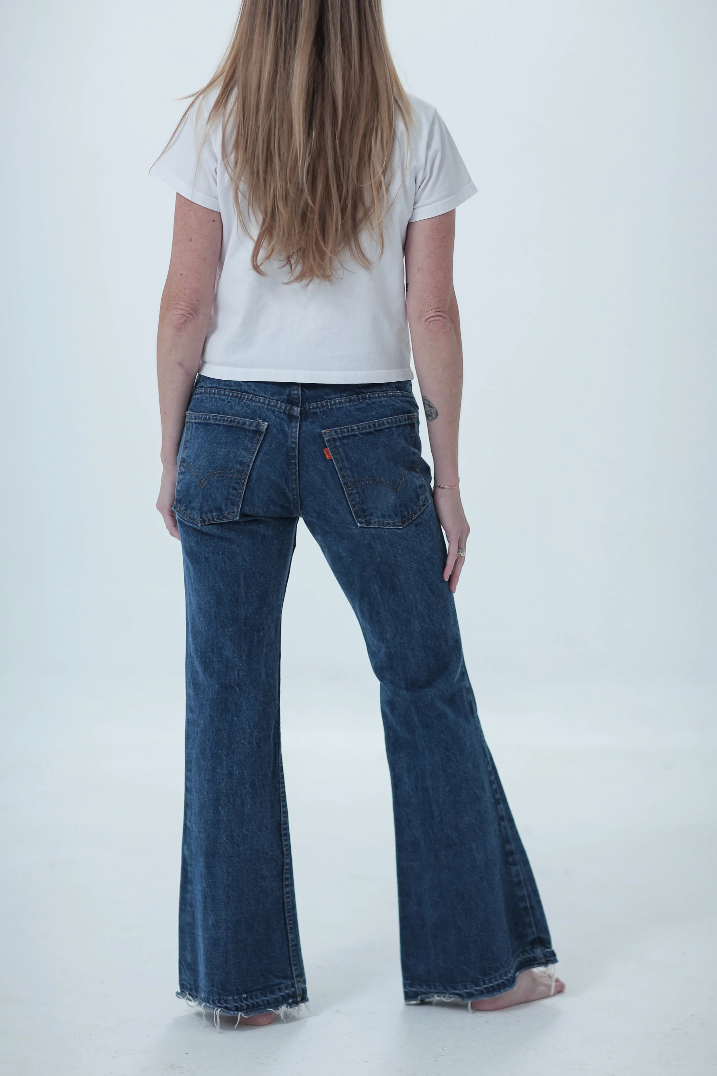 684 Dark Wash / WORN: fitted with a little room / ACTUAL FLAT LAY MEASUREMENTS (in inches): WAIST: 14.75 / RISE: 10.5 / INSEAM: 32 with released hem