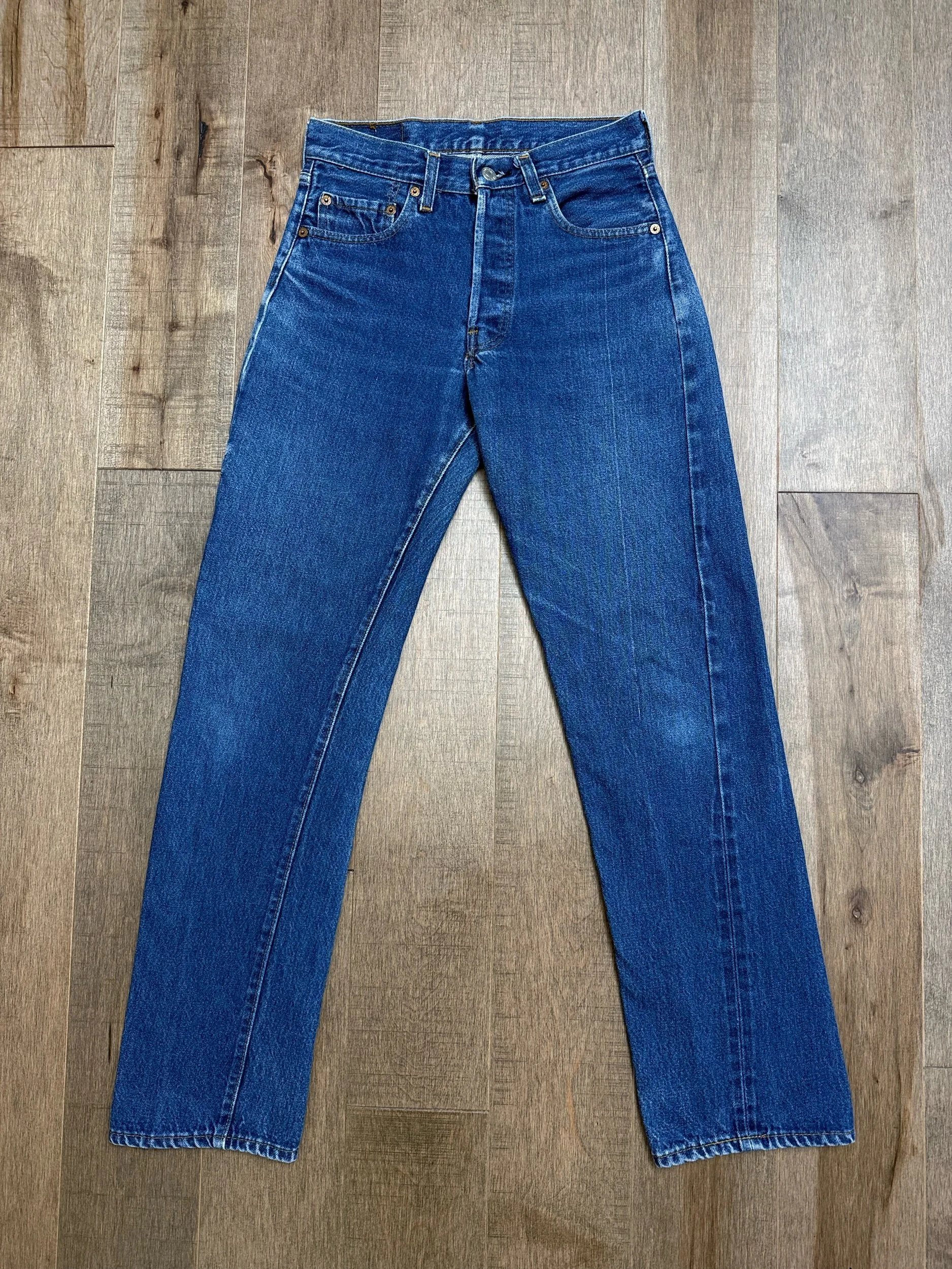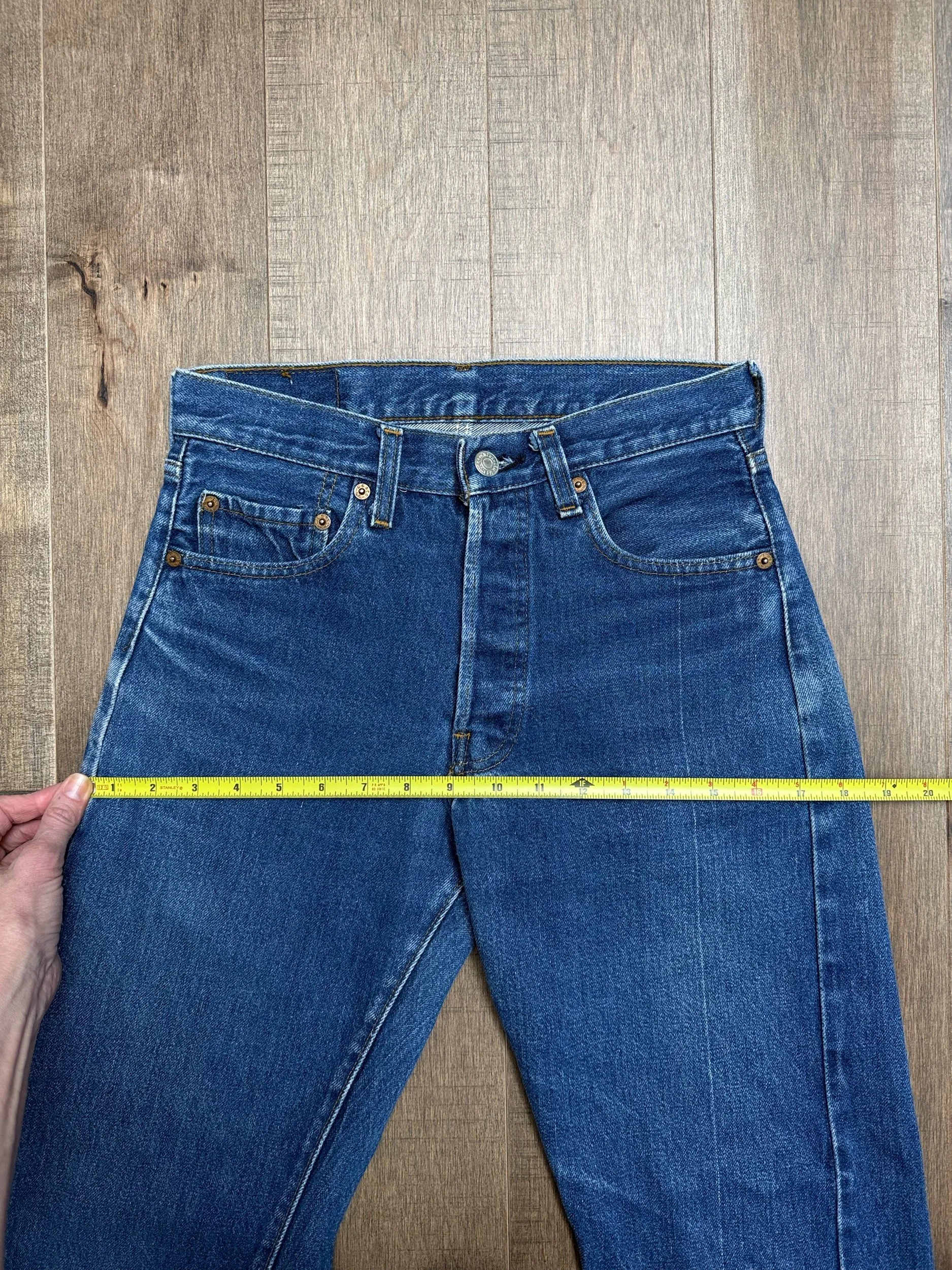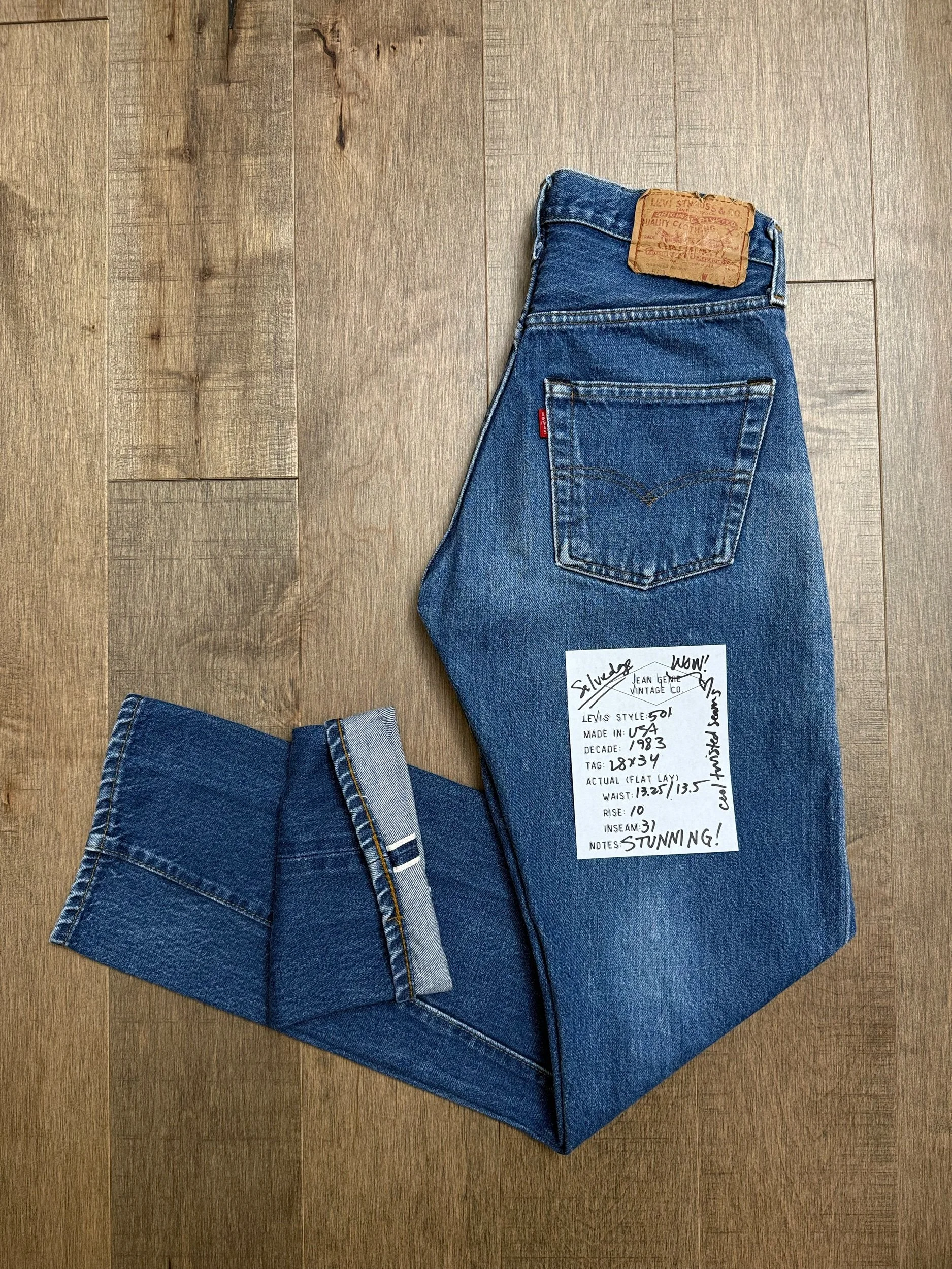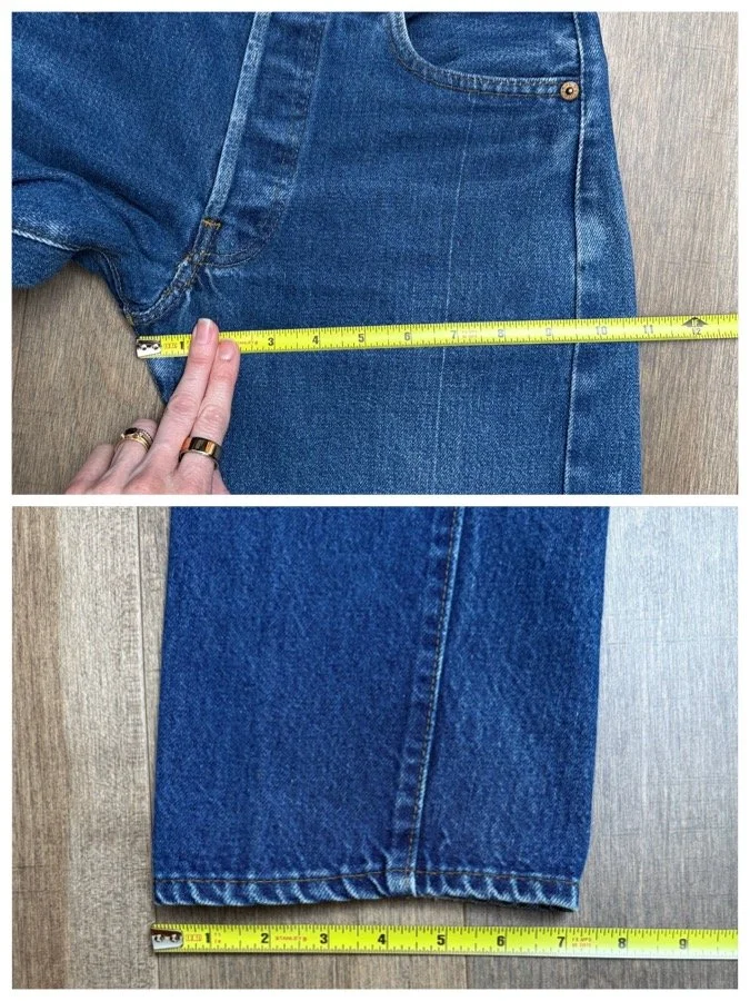 Keep in mind, vintage jeans are not new jeans. Every pair is at least 20 years old, most are older. This means they’ve been worn and likely have signs of wear - i.e. thinning areas, loose threads, signs of previous repair work, discolorations, faint (or not so faint stains), organic distressing, wear at the rivets, wear at the button holes. I do my best to describe these areas/signs of wear&tear, so please - before you buy - understand that you may receive your jeans and there will be signs of aging. Most buy vintage jeans wanting this, but if you want pristine new looking jeans, vintage likely isn’t for you. And that’s A-OK!