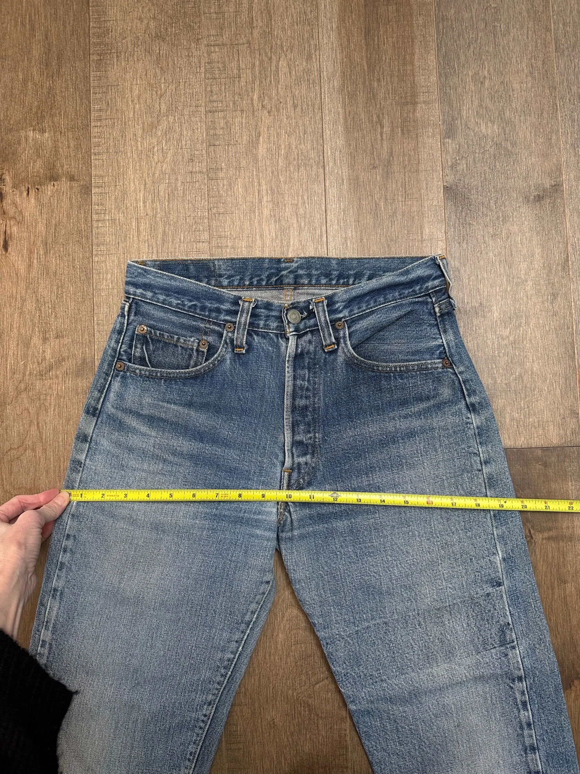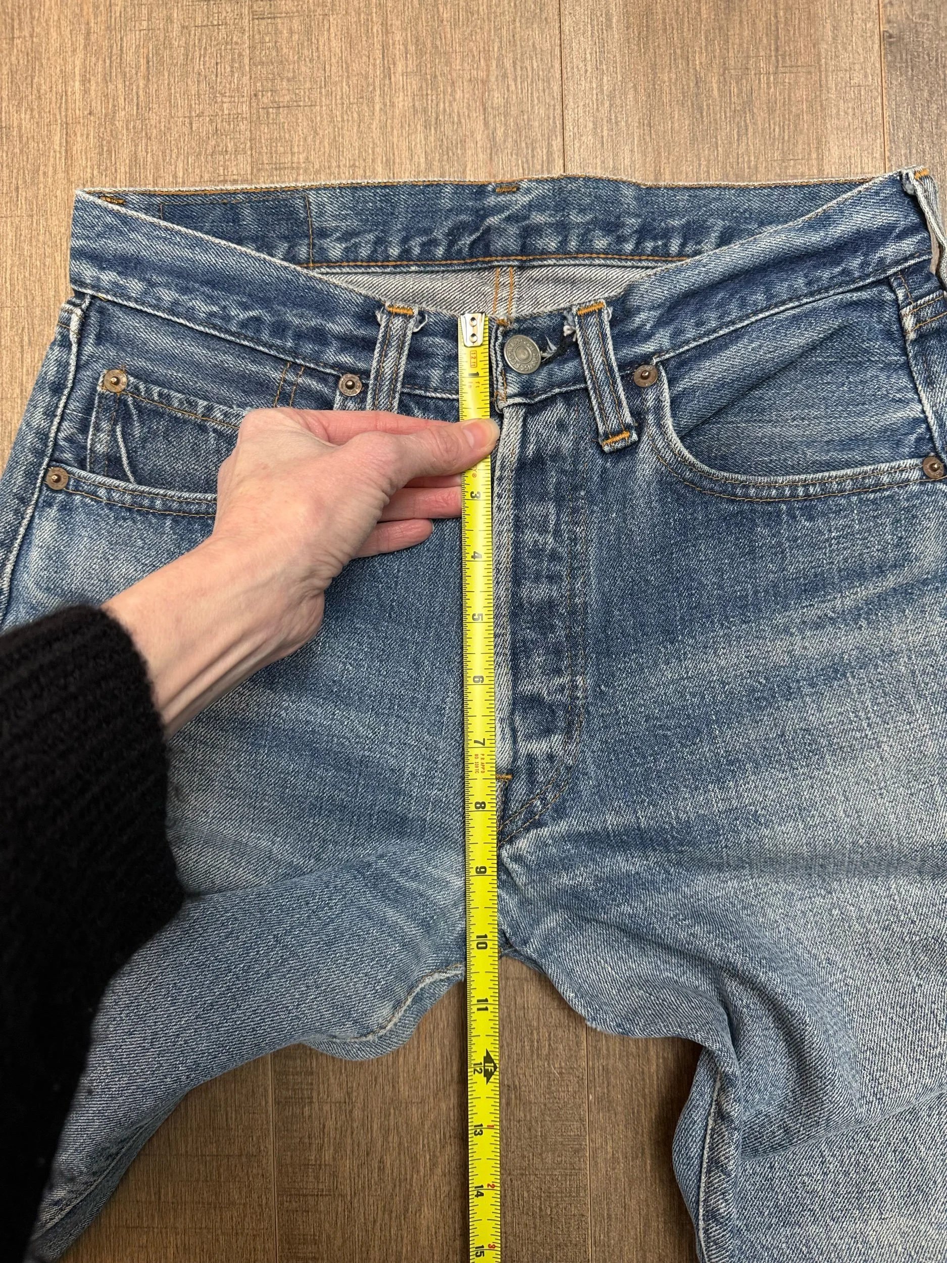 Keep in mind, vintage jeans are not new jeans. Every pair is at least 20 years old, most are older. This means they’ve been worn and likely have signs of wear - i.e. thinning areas, loose threads, signs of previous repair work, discolorations, faint (or not so faint stains), organic distressing, wear at the rivets, wear at the button holes. I do my best to describe these areas/signs of wear&tear, so please - before you buy - understand that you may receive your jeans and there will be signs of aging. Most buy vintage jeans wanting this, but if you want pristine new looking jeans, vintage likely isn’t for you. And that’s A-OK!