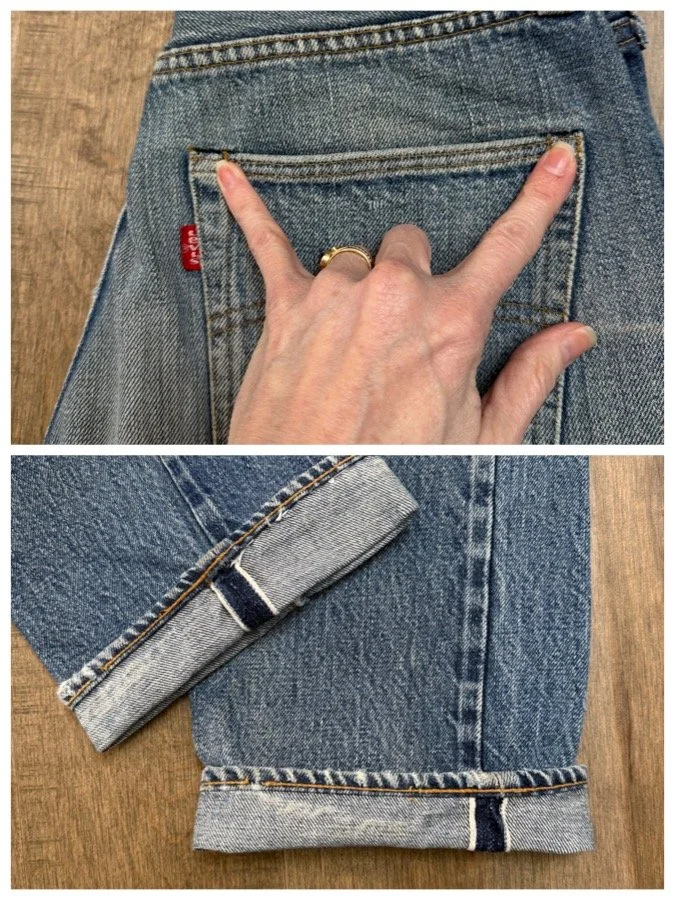 HISTORY LESSON: Levi’s stopped selvedge in 1984. Furthermore… Prior to 1971, there’s a Big E on the red tab. These are the most sought after vintage Levi’s. And valuable, and will only increase in value. Some sellers have stopped selling big E and only keep as an investment because they’re becoming so rare. Some folks cut the red tabs off back then, but you can tell the “big E” apart because of the single stitch on pockets and other telling characteristics. If there’s a V-stitch on the inside of the main button, it’s pre-1969. If there’s Selvedge in the coin pocket, it’s pre-1965. And on and on… 😉