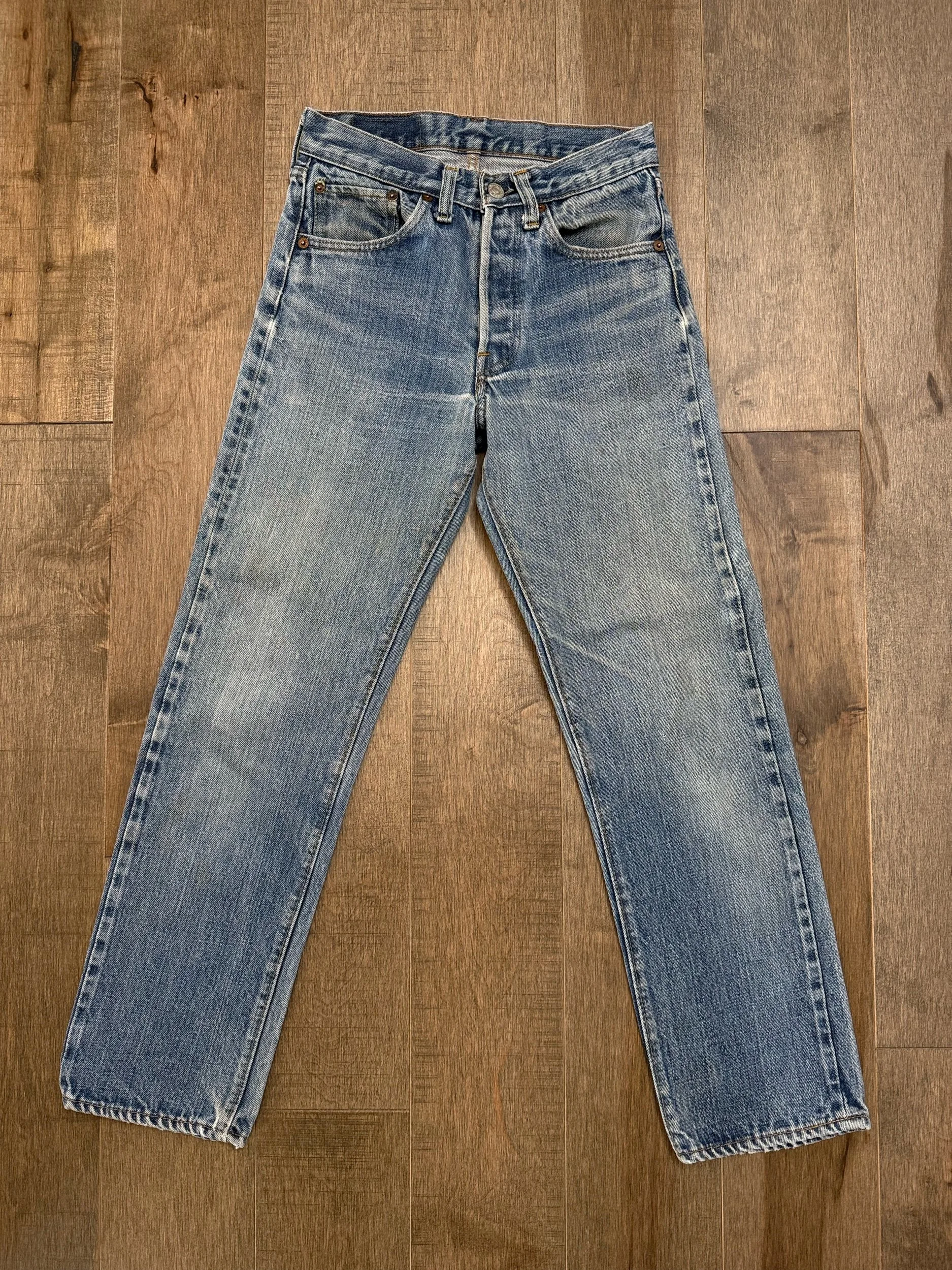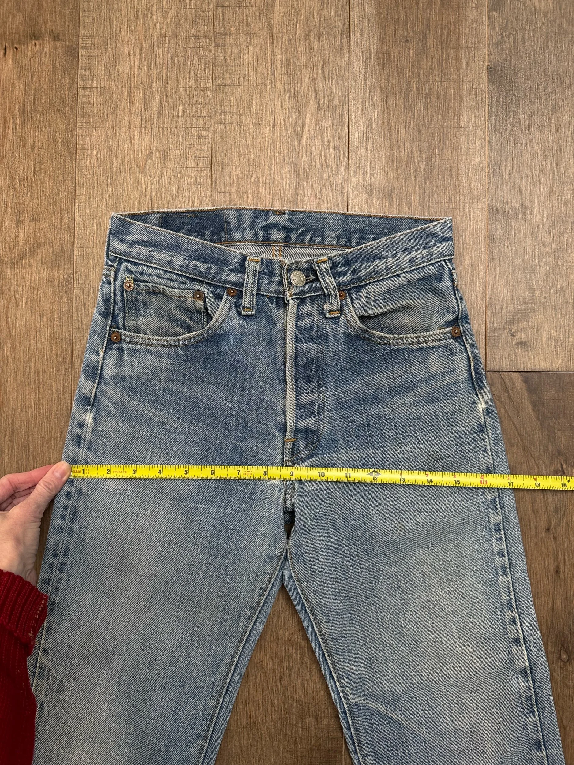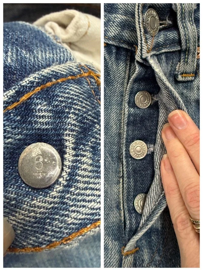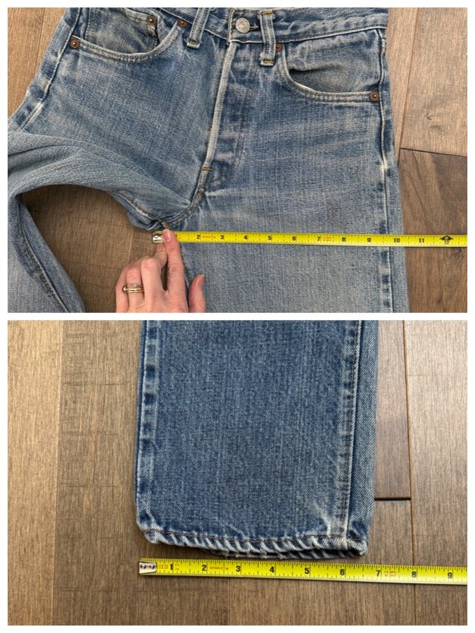 Keep in mind, vintage jeans are not new jeans. Every pair is at least 20 years old, most are older. This means they’ve been worn and likely have signs of wear - i.e. thinning areas, loose threads, signs of previous repair work, discolorations, faint (or not so faint stains), organic distressing, wear at the rivets, wear at the button holes. I do my best to describe these areas/signs of wear&tear, so please - before you buy - understand that you may receive your jeans and there will be signs of aging. Most buy vintage jeans wanting this, but if you want pristine new looking jeans, vintage likely isn’t for you. And that’s A-OK!