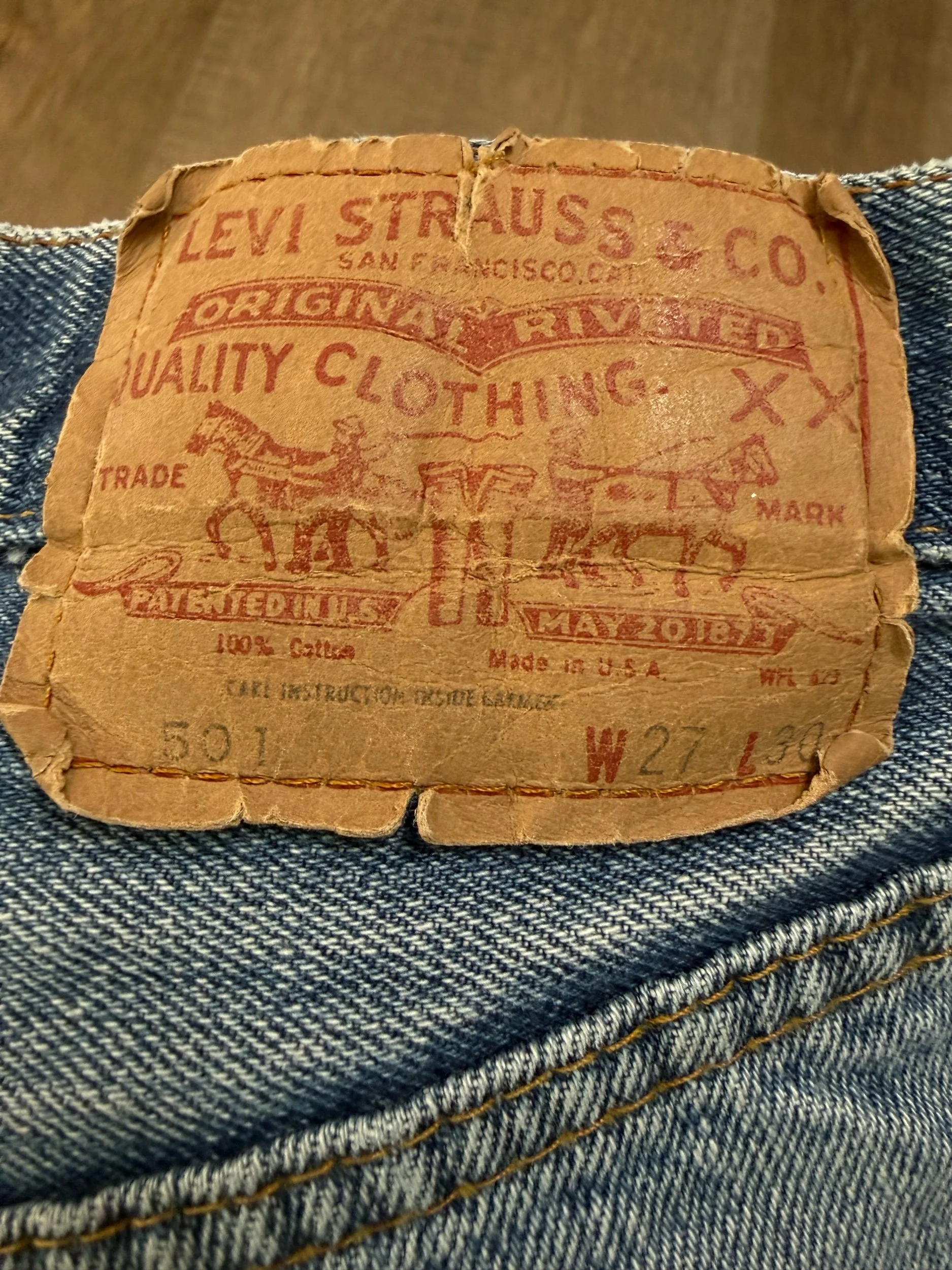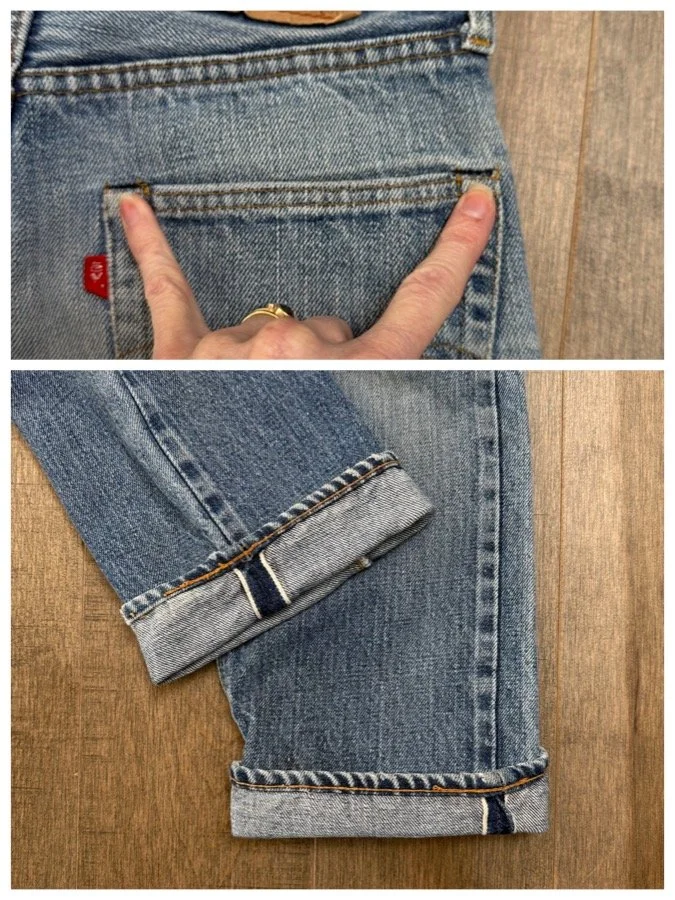 HISTORY LESSON: Levi’s stopped selvedge in 1984. Furthermore… Prior to 1971, there’s a Big E on the red tab. These are the most sought after vintage Levi’s. And valuable, and will only increase in value. Some sellers have stopped selling big E and only keep as an investment because they’re becoming so rare. Some folks cut the red tabs off back then, but you can tell the “big E” apart because of the single stitch on pockets and other telling characteristics. If there’s a V-stitch on the inside of the main button, it’s pre-1969. If there’s Selvedge in the coin pocket, it’s pre-1965. And on and on… 😉