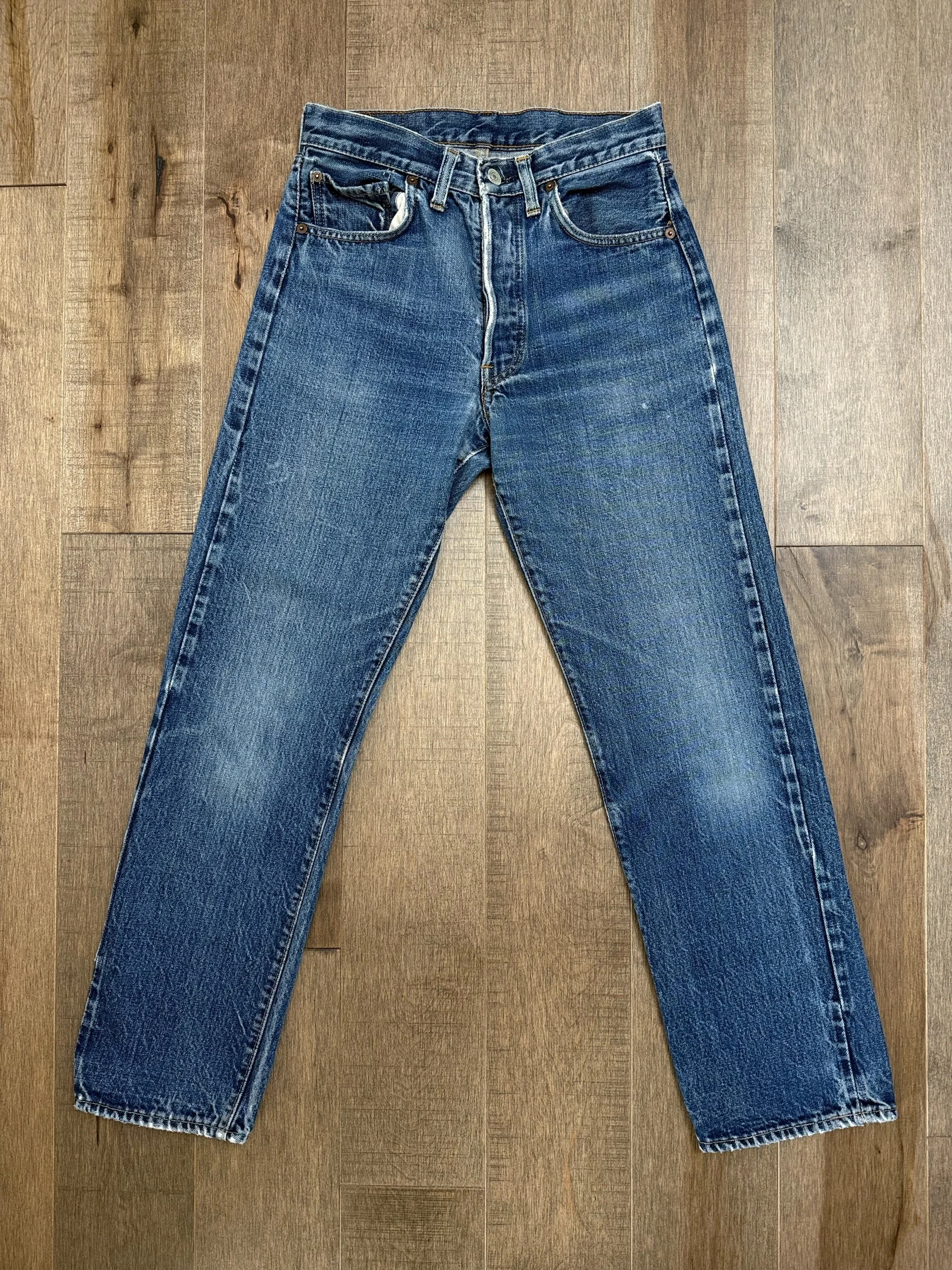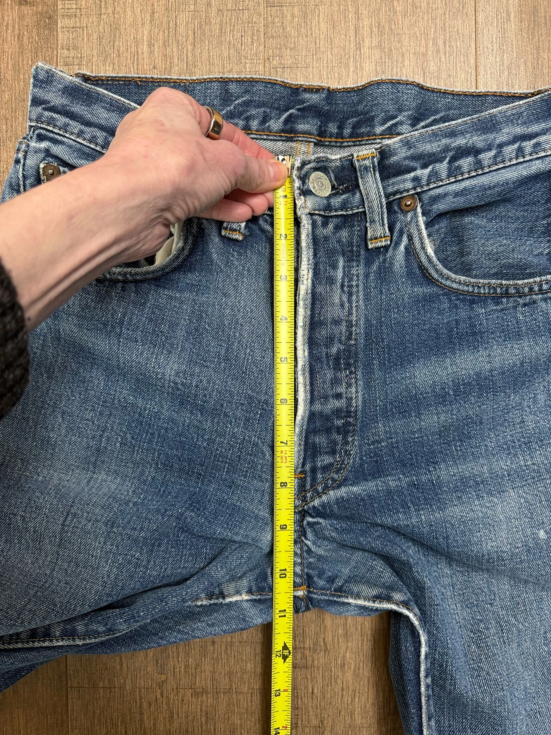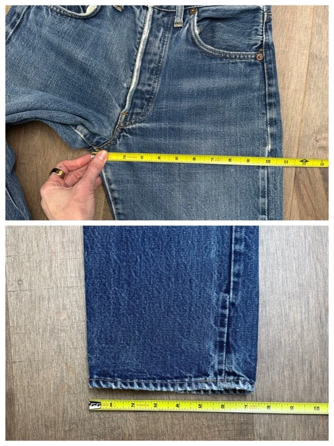 Keep in mind, vintage jeans are not new jeans. Every pair is at least 20 years old, most are older. This means they’ve been worn and likely have signs of wear - i.e. thinning areas, loose threads, signs of previous repair work, discolorations, faint (or not so faint stains), organic distressing, wear at the rivets, wear at the button holes. I do my best to describe these areas/signs of wear&tear, so please - before you buy - understand that you may receive your jeans and there will be signs of aging. Most buy vintage jeans wanting this, but if you want pristine new looking jeans, vintage likely isn’t for you. And that’s A-OK!