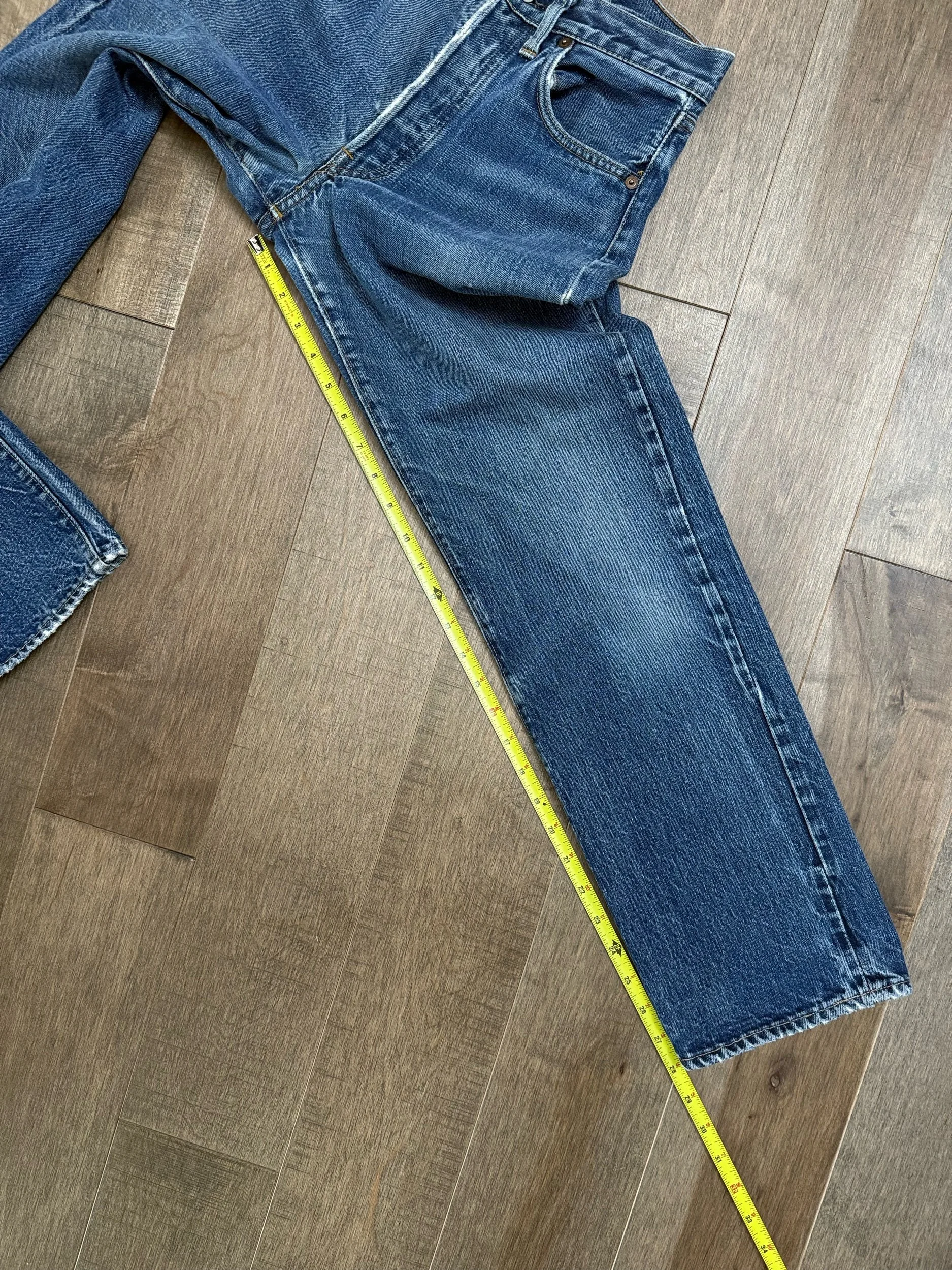 WASH: absolutely gorgeous darker medium indigo wash with perfect organic sun fades — in insane condition! These are just WOW!!!