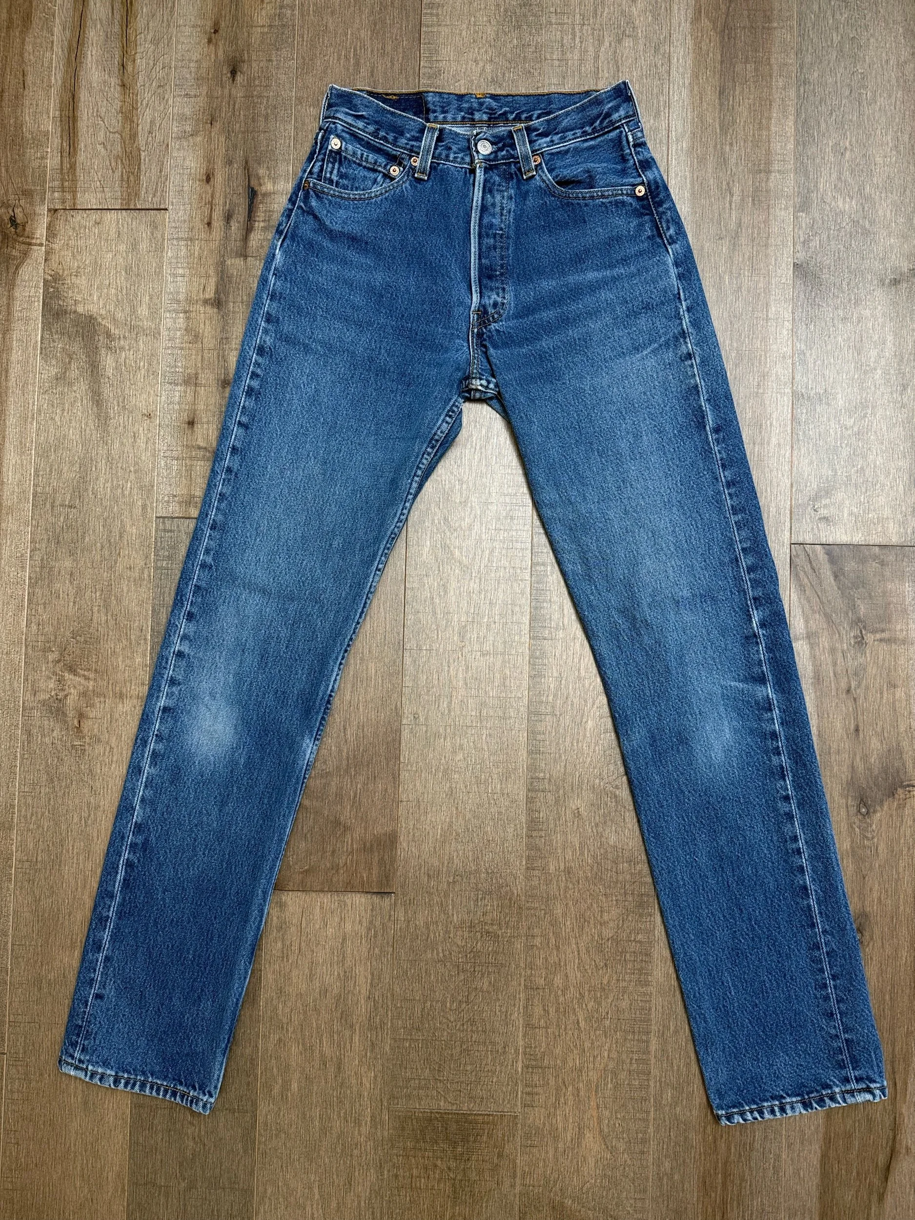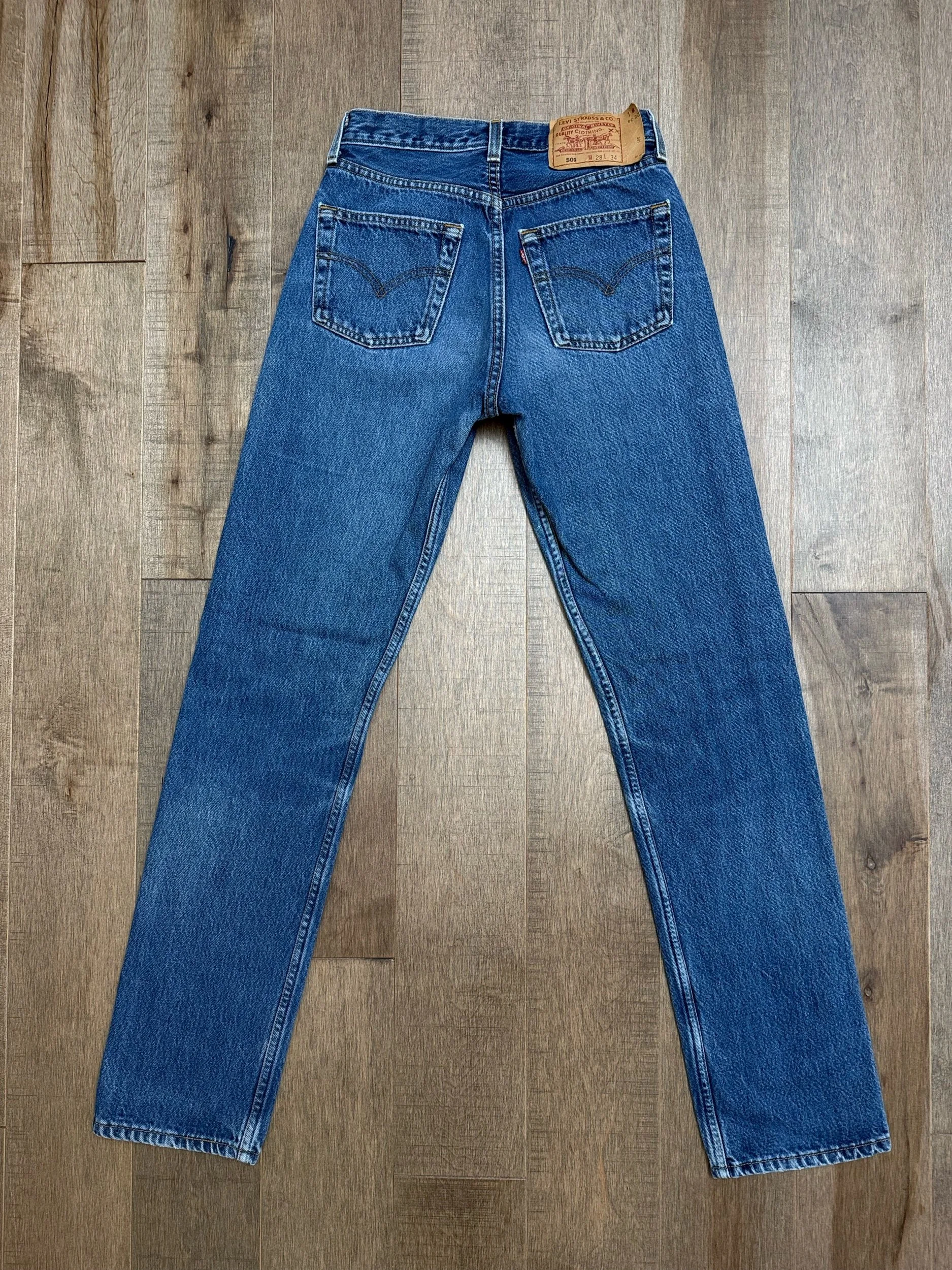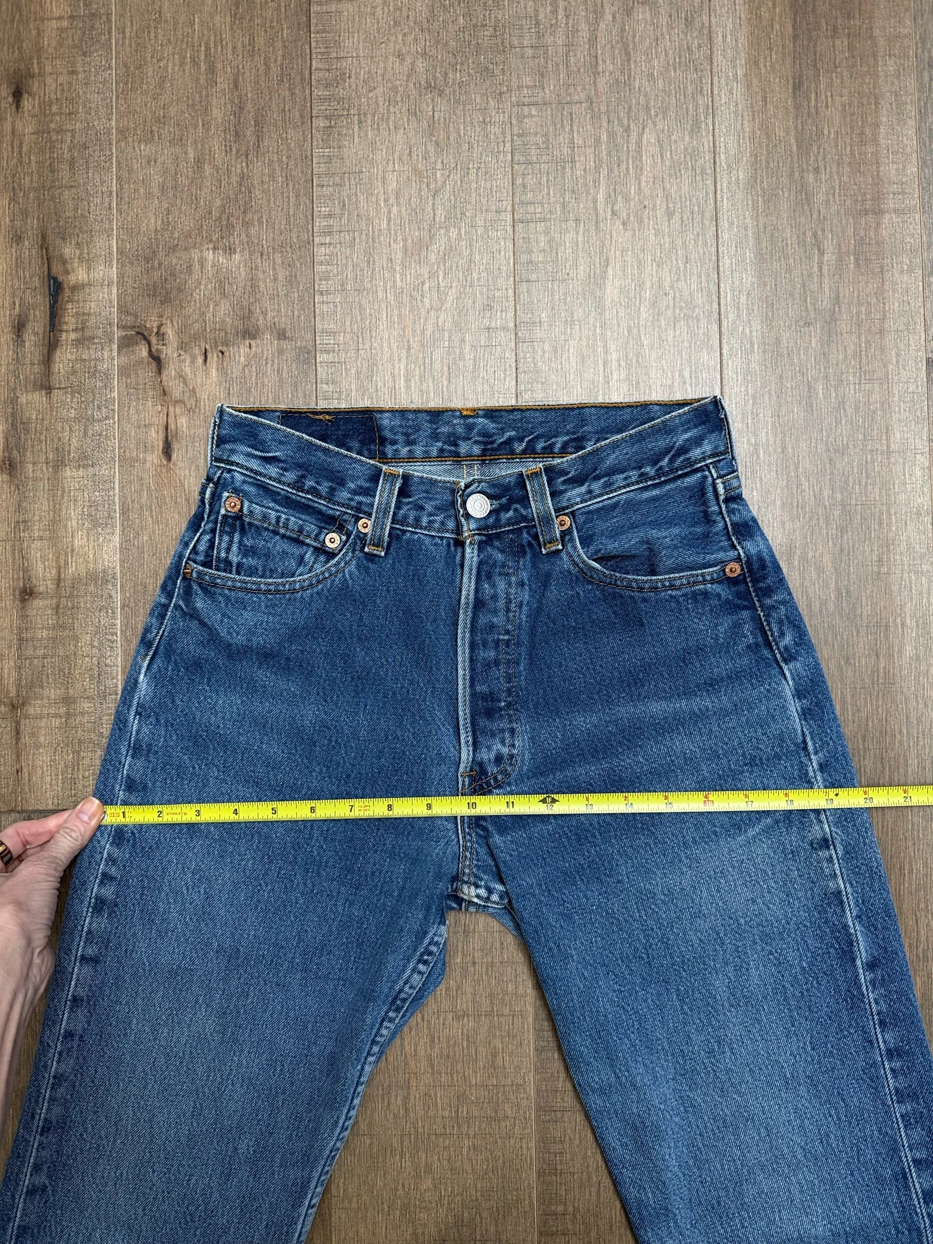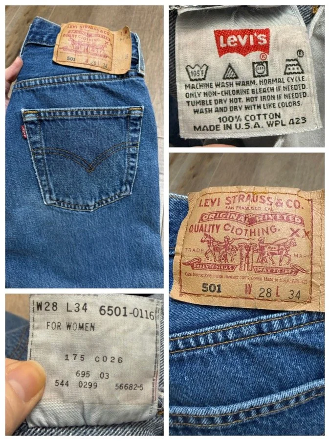 Sold as is. Keep in mind, vintage jeans are not new jeans. Every pair is at least 20 years old, most are older. This means they’ve been worn and likely have signs of wear - i.e. thinning areas, loose threads, signs of previous repair work, discolorations, faint (or not so faint stains), organic distressing, wear at the rivets, wear at the button holes. I do my best to describe these areas/signs of wear&tear, so please - before you buy - understand that you may receive your jeans and there will be signs of aging. Most buy vintage jeans wanting this, but if you want pristine new looking jeans, vintage likely isn’t for you. And that’s A-OK! Also note, the word “vintage” is not synonymous with super worn & faded. Vintage means over 20 years old. An item can be both vintage and still be new or like new condition.