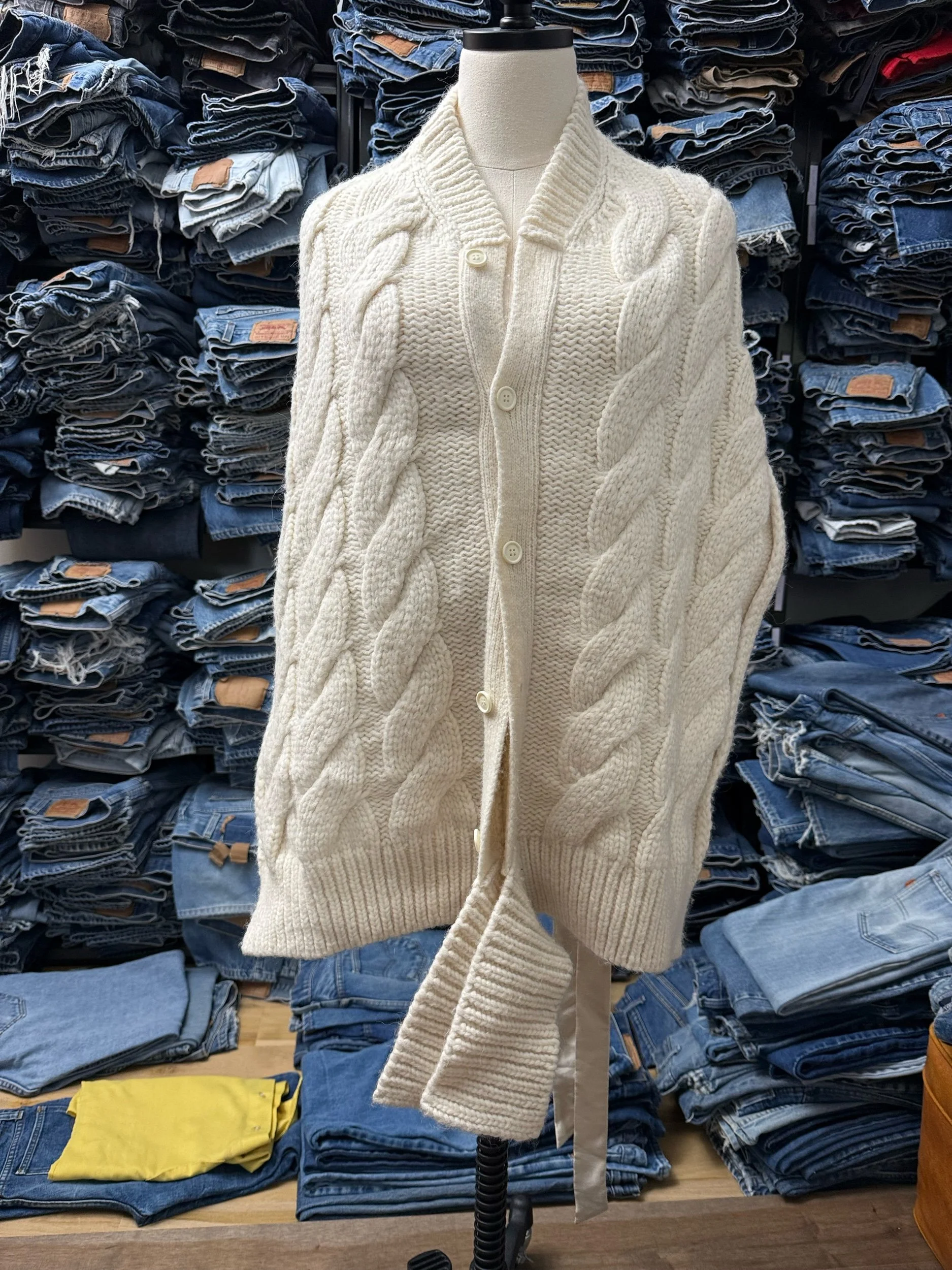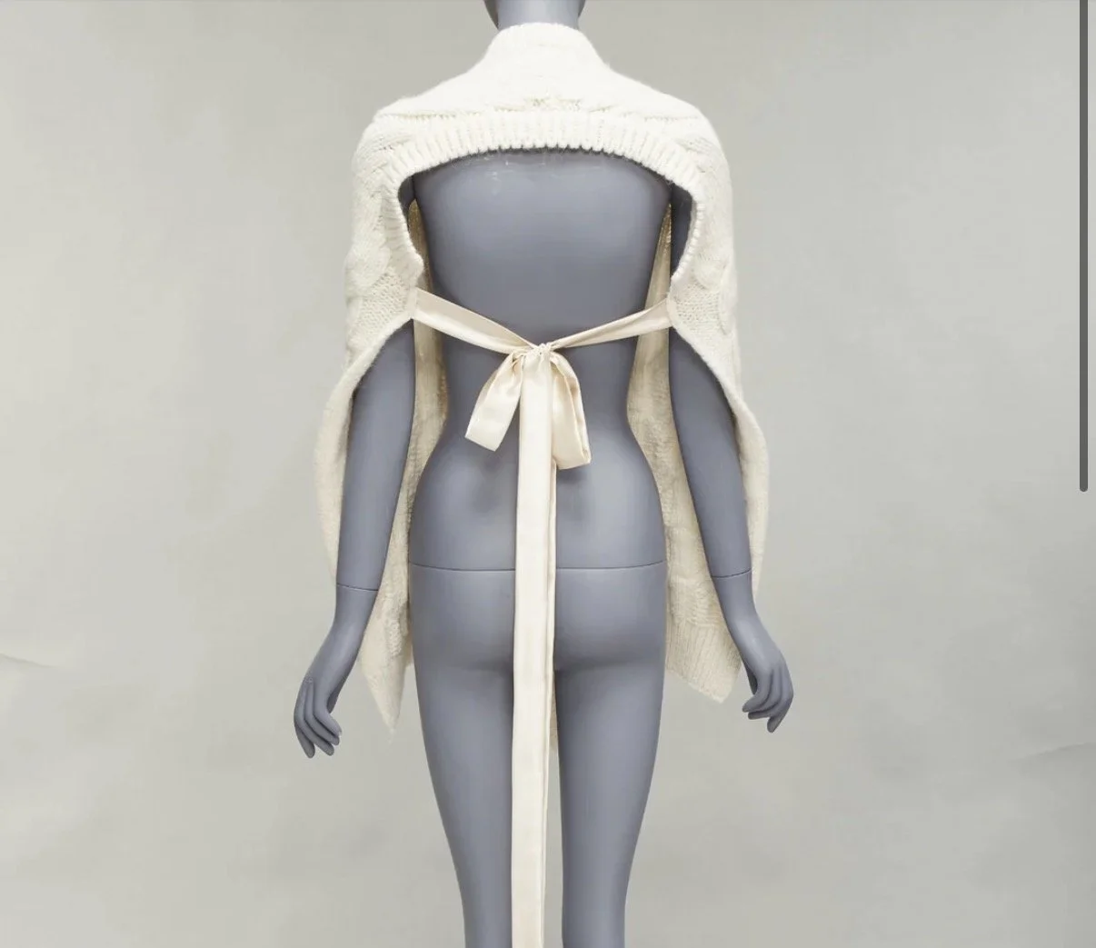 SIMONE ROCHA cream alpaca ribbon tie open back draped cable knit top S